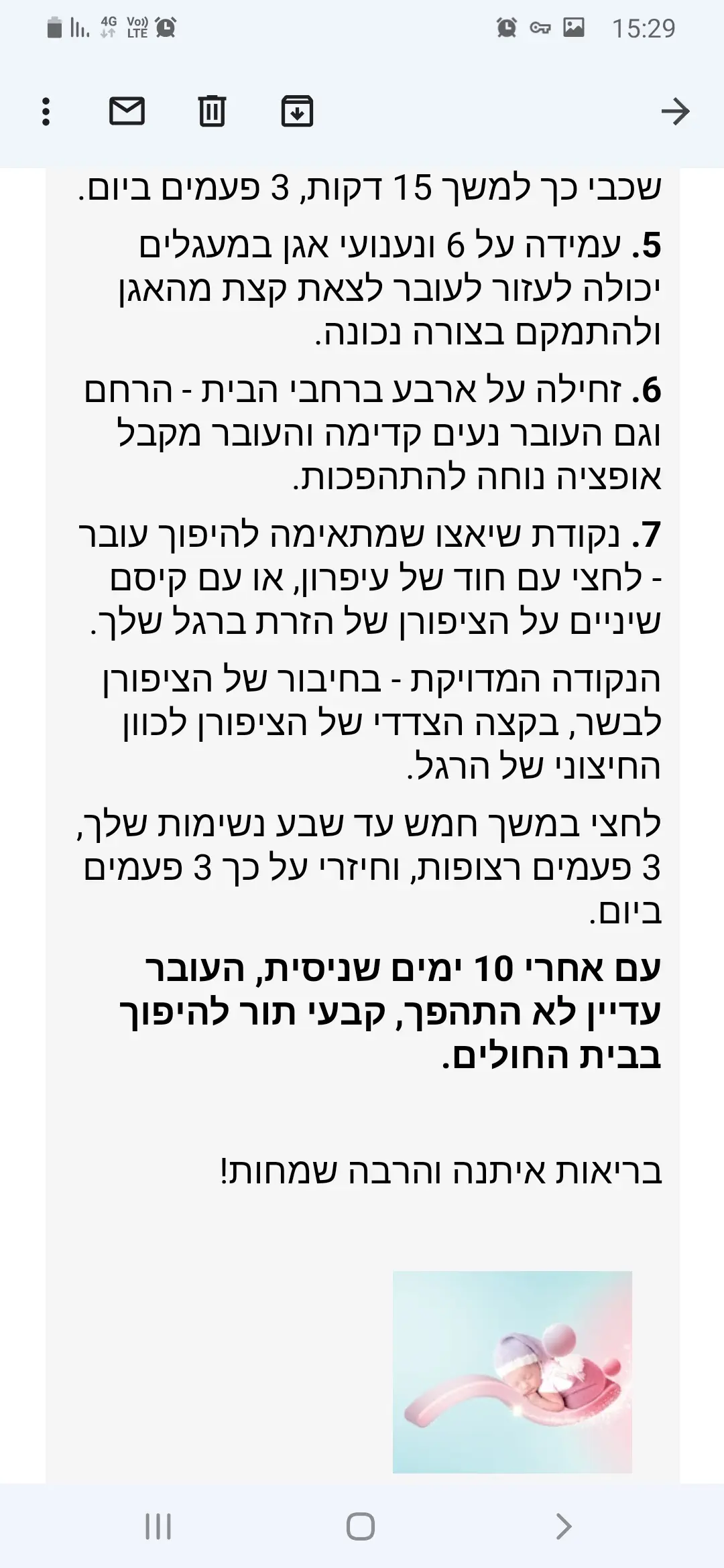 ואת התרגיל עשיתי בשבוע 32 אחרי שגיליתי שהיא עכוז. עשיתי אותו רק פעם אחת