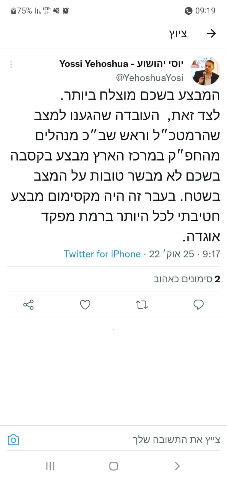וגם המבצעים בשכם, לא יודע אם שמעת, שהיו פעם ברמת מג"ד או מקסימום מח"ט - היום דורשים את פיקוח הרמטכ"ל וראש השב"כ, שזה מצב עצוב מאוד...