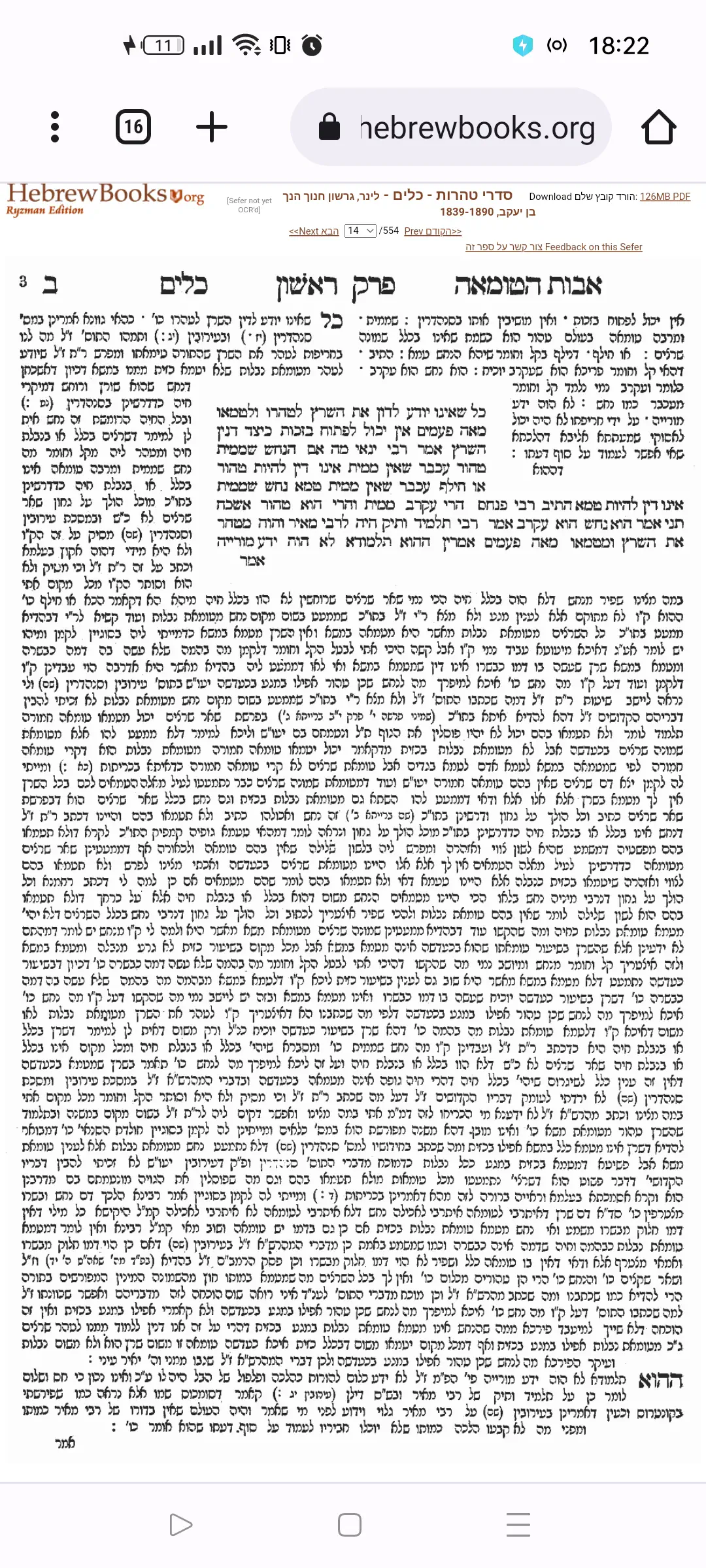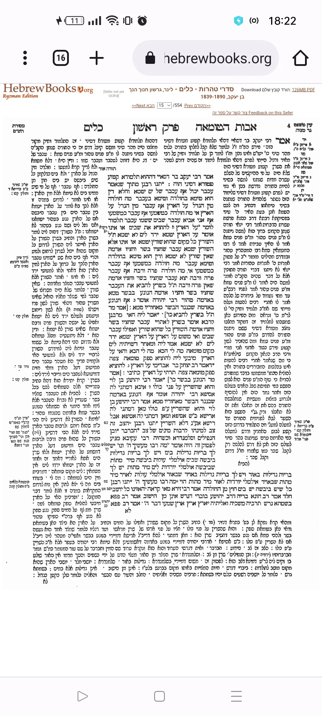 ואז בפירוש הארוך מצד ימין בתמונה השנייה שם האדמו"ר מראדזין מביא את דברי הפני משה (זה ירושלמי שהוא ליקט לתוך סדרי טהרות ולכן הפירושים הסטנדרטיים שם הם פני משה וקרבן העדה, הקרבן העדה הסכים עם הפני משה) ואז חולק עליו.
