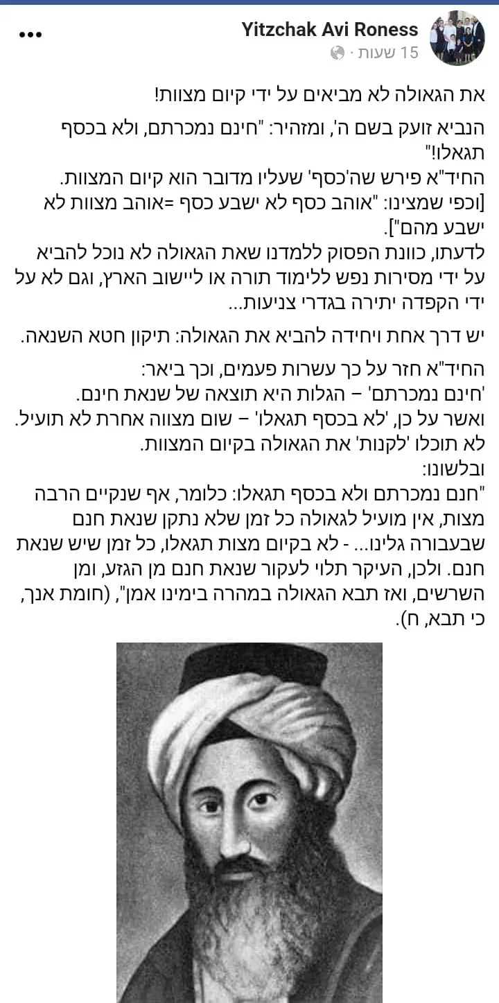 ישוב הארץ שזה מעלה בפני עצמה לא מוציאה אותך מהגלות.