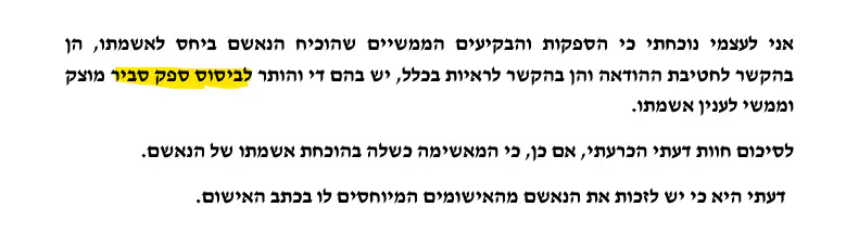 בכל מקרה, אם נשים את הספק והפסק הישן (תוסיף לזה את העדות של ד"ר חן קוגל מהמכון לרפואה משפטית שהפרקליטות מוכנה שיביאו ראיות רק לטובתה ולא להפך)