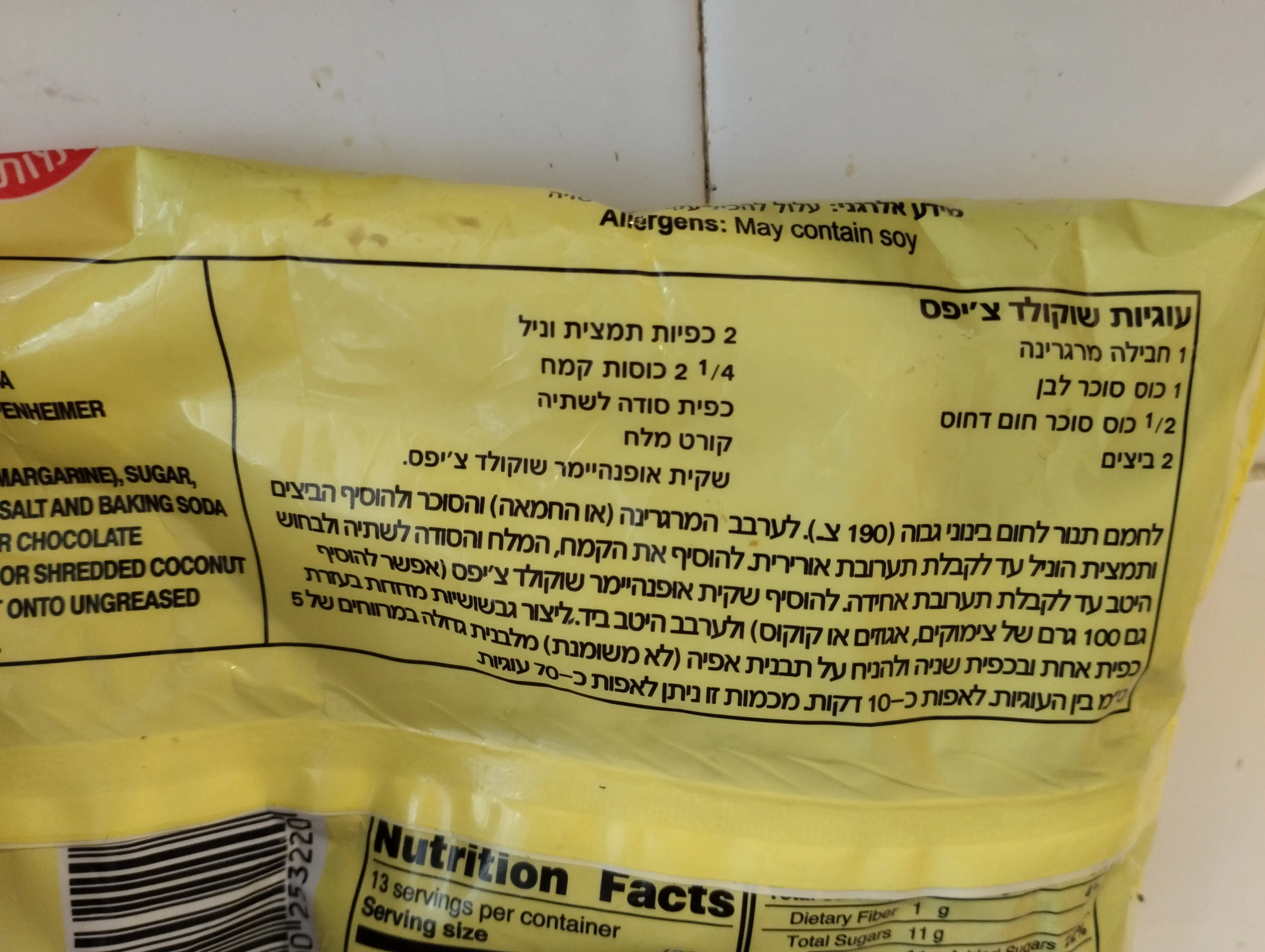 אני מחפשת את המתכון של העוגיות שוקולד צ'יפס שמופיע מאחורי האריזה של אחת החברות של השוקולד צ'יפס