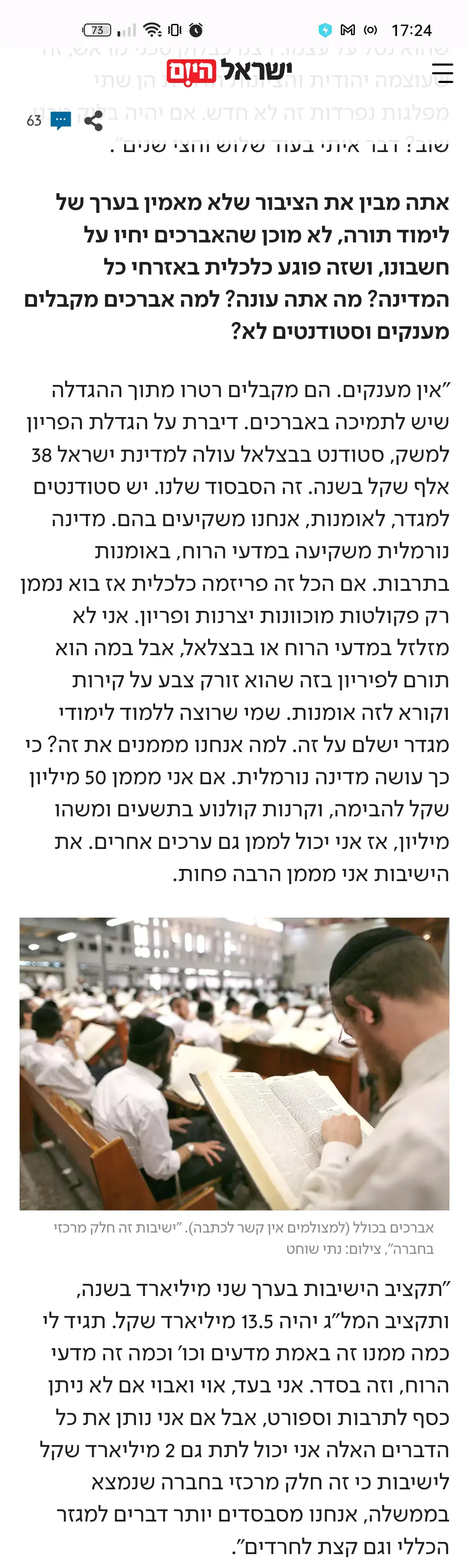 ולכן זה שציבור האברכים "מביא פחות" זה כמעט לא מוטל בספק. וכנראה בהכללה, המגזר החרדי.