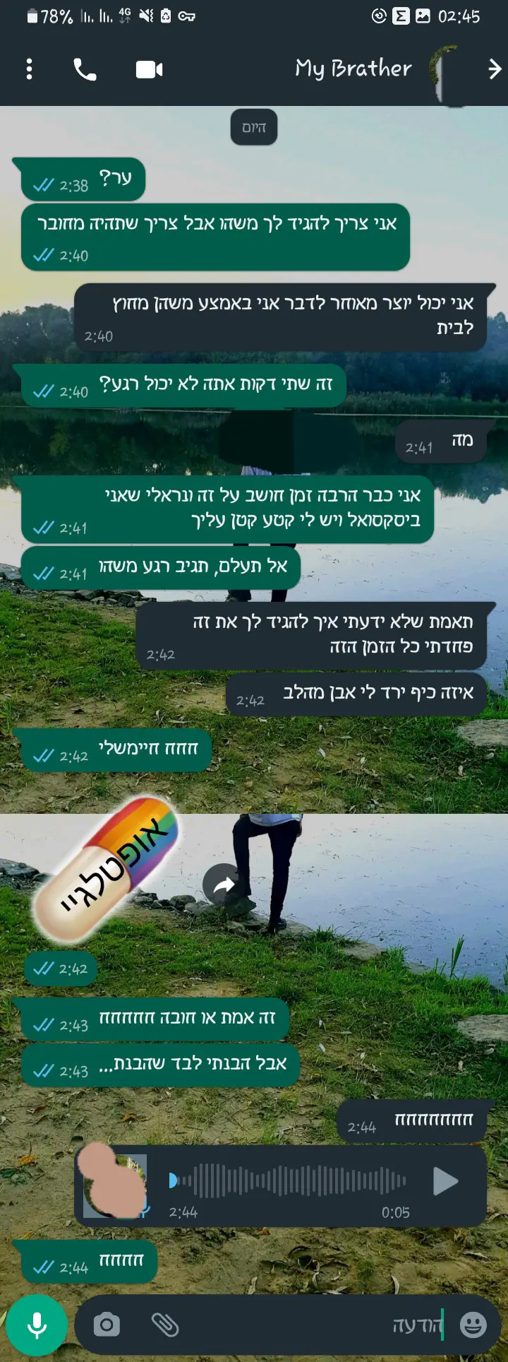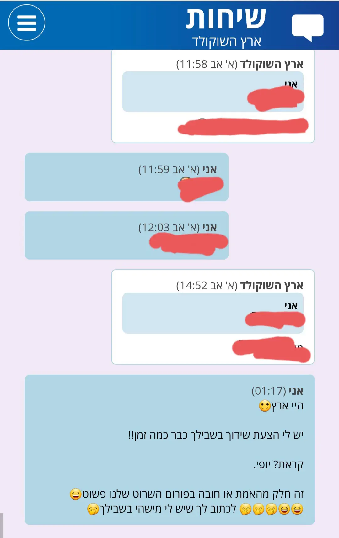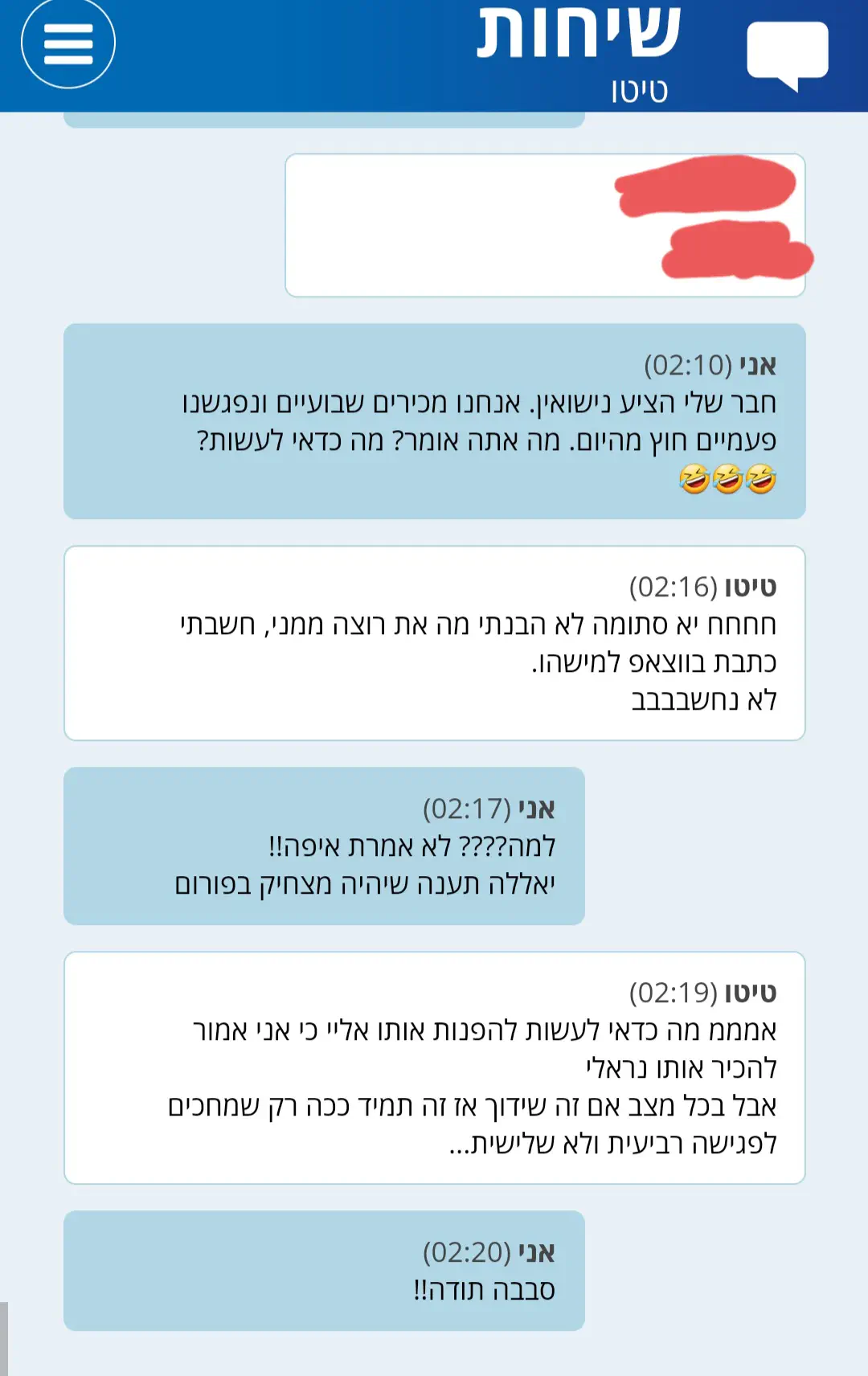 אבל כן הוא לא ידע שזה בפורום הוא חשב קבוצת ווצאפ או משהו, אבל עדיין היה צריך להגיד לי לא חבר טוב כי אז זה יותר פאדיחה