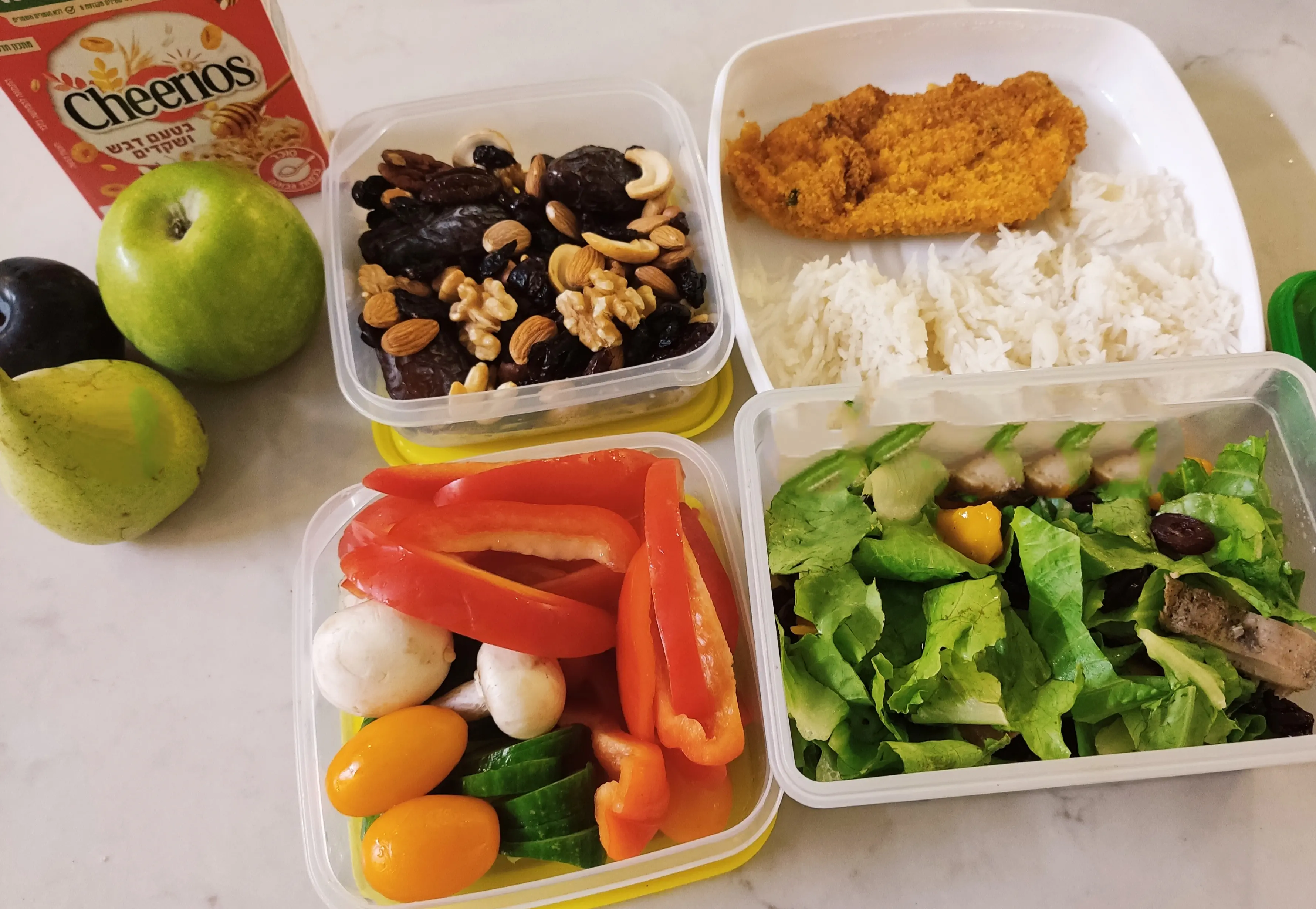 (בימים הטובים דוחפת לתיק איזה פיתה ריקה וכמה תמרים. בימים הפחות טובים נכנסת לסופר ליד העבודה, קונה לחמניה ואיזה יוגורט, ובמקרי קיצון גם ביסלי ברביקיו. ה' ירחם)
