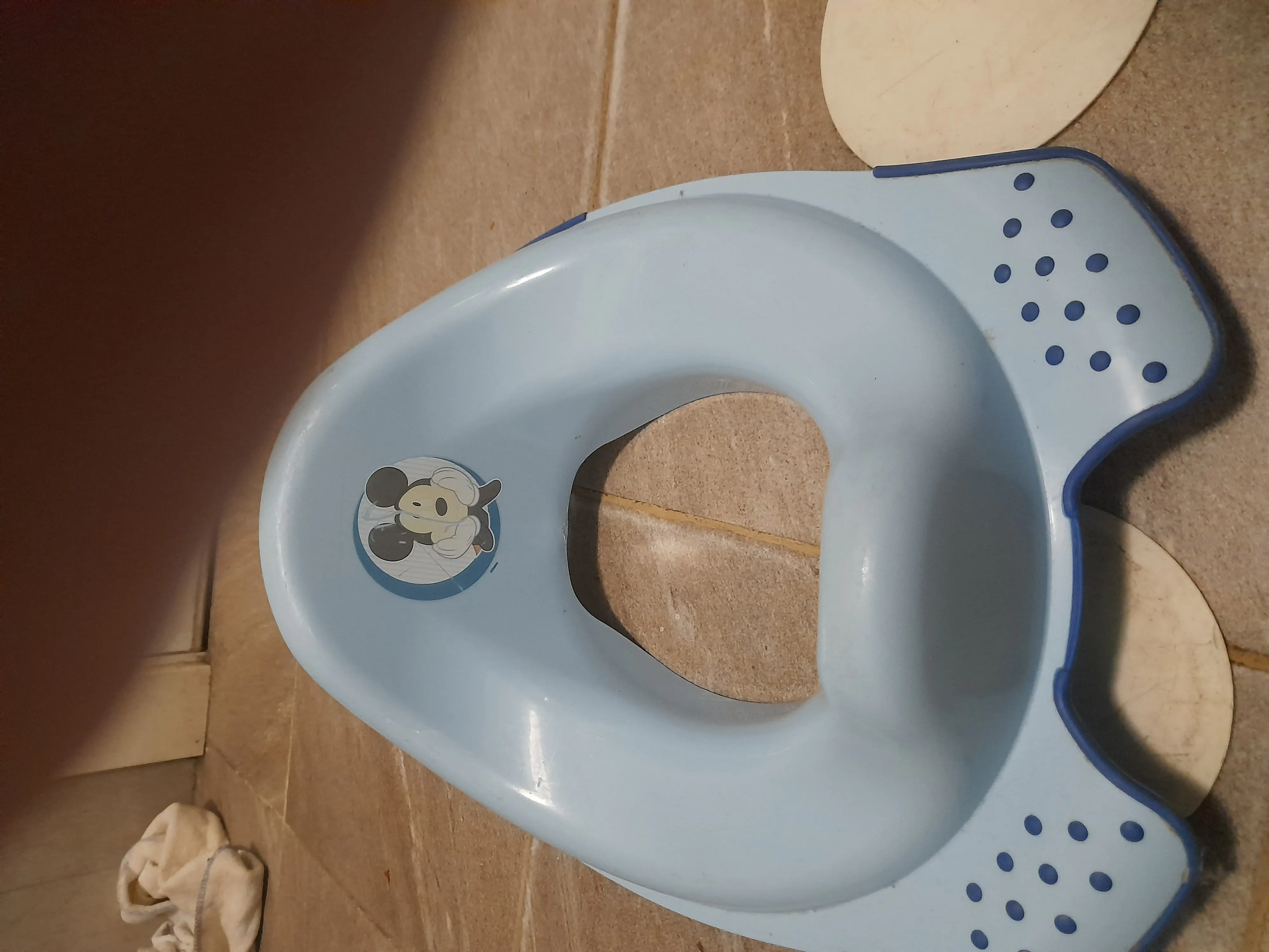 הוא יושב על מקטין אסלה. חצי מהפעמים הוא מצליח לעשות בתוך והכל טוב, אבל בחצי השני... מרטיב את התחתונים והמכנסיים שנשארו יבשים עד עכשיו (לא מובן מאליו), מרטיב את השרפרף והרצפה והסנדלים, ואם אין לי מזל אז גם אותי. והוא נבהל אז הולך אחורה והכל משפריץ עוד יותר קדימה, ואם אני מטה אותו קדימה אז הוא נלחץ ומפסיק לעשות בכלל...