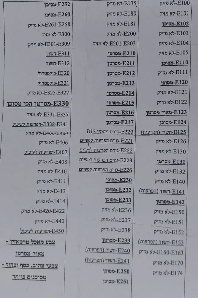 ברשימה שם יש גם חומרים שנאסרו לשימוש במאכלים משום שהם מסרטנים וכיוצב