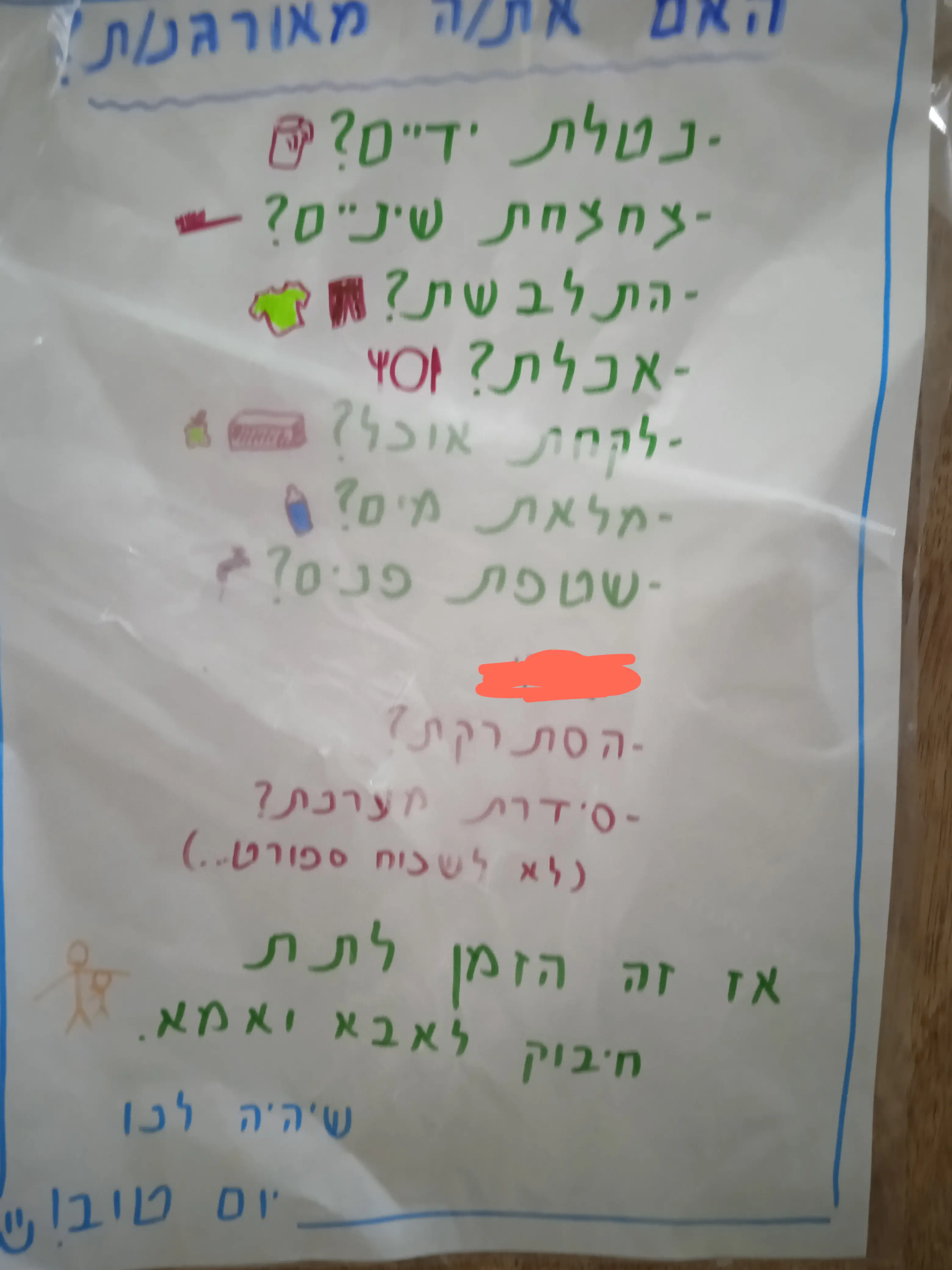 * דד ליין. שעה מסוימת שיוצאים בה מהבית. זה עוזר לתחום את זמן ההתארגנות