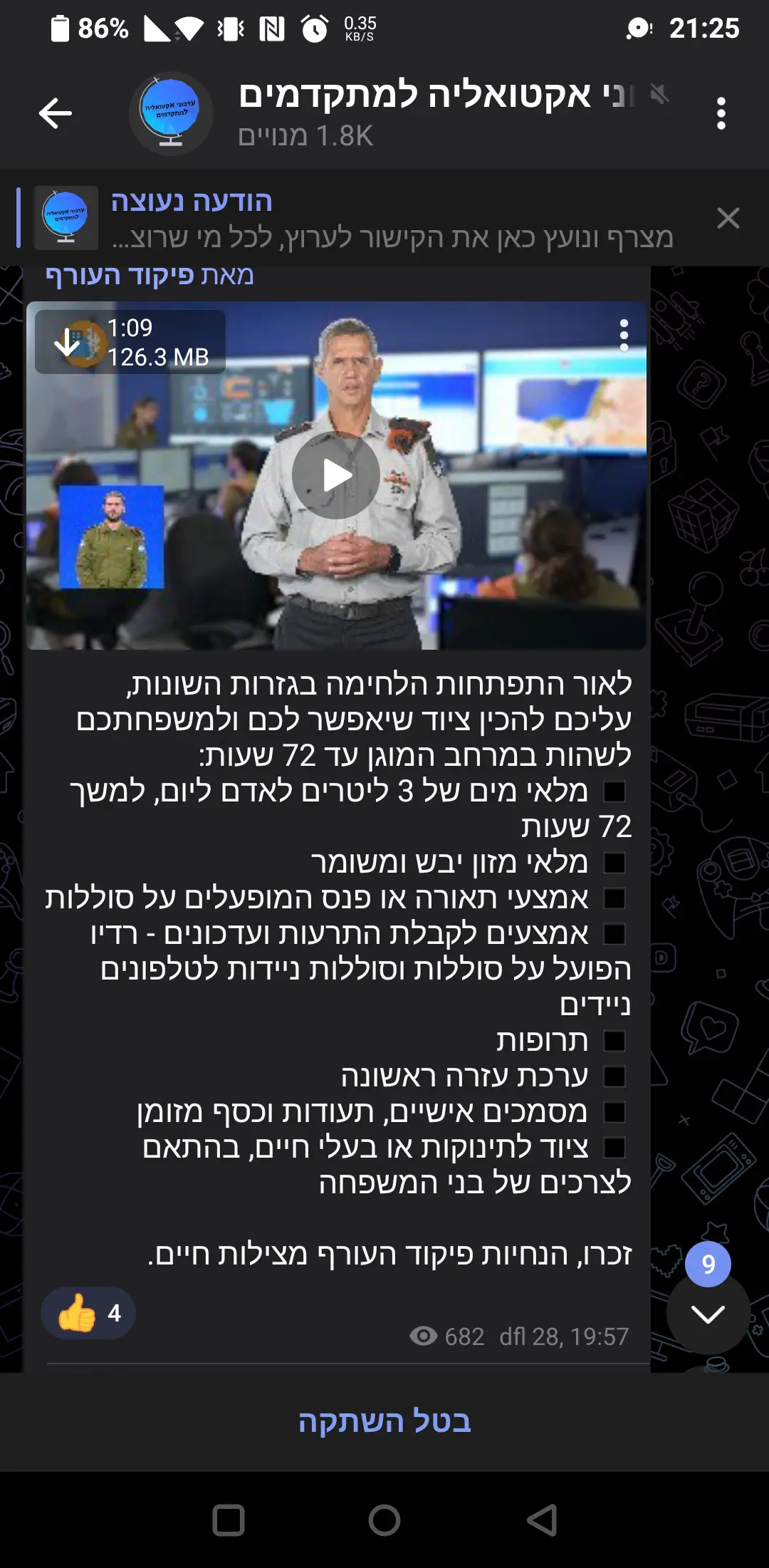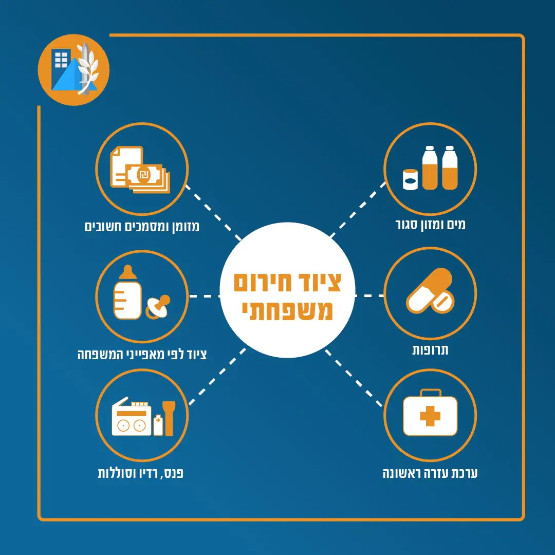 במידה ולא נערכתם עם ציוד משפחתי עד כה, אנו ממליצים להיערך בהתאם להנחיות פיקוד העורף ולהכין את הציוד המשפחתי הנדרש בימים אלו.