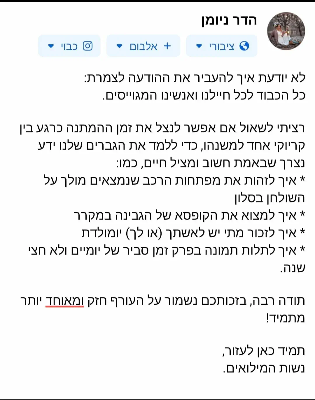 תשתפי אותנו מה כבר אפשר לומר נגד אנשי מילואים 😉