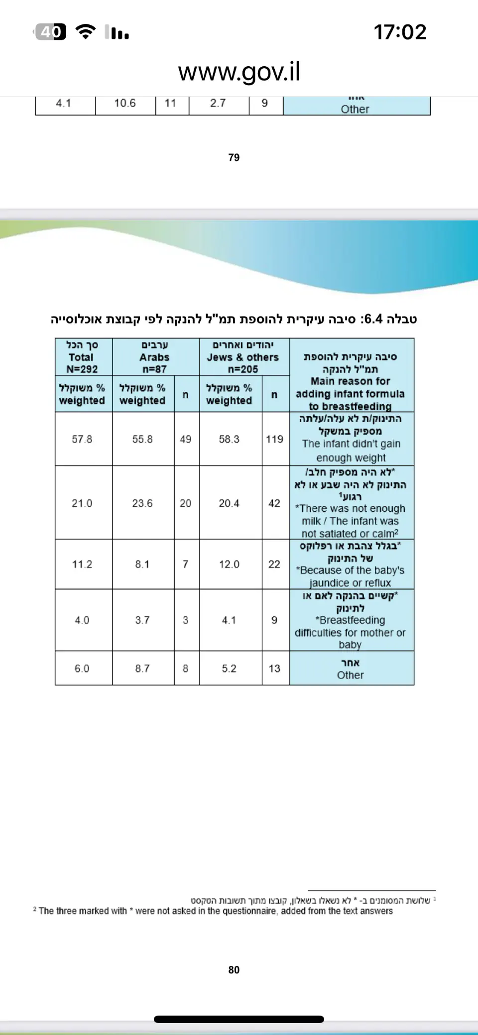 ורק לגבי הנתונים שאת הבאת - לא כתוב בפירוש מתוך מה האחוזים המצויינים, אבל אני הבנתי שמדובר על אחוזים מתוך הנשים הפסיקו להניק או ששילבו תמ"ל.