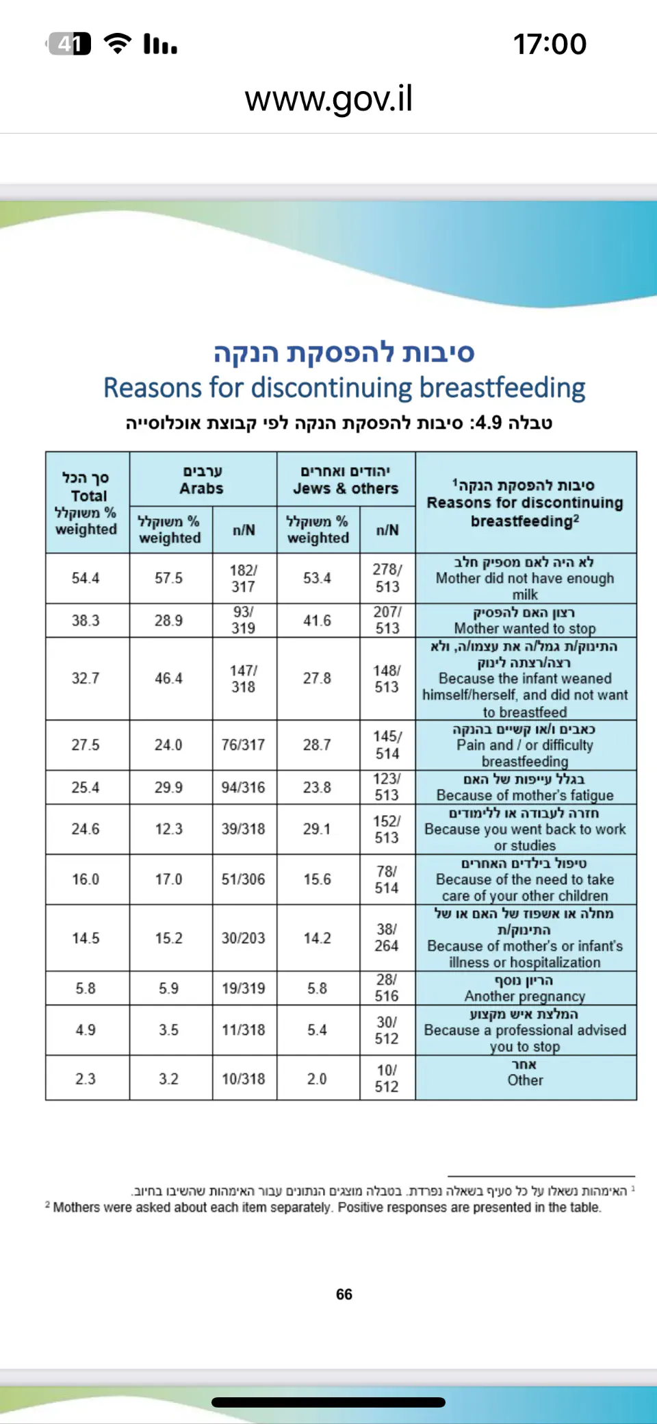 ז"א, לא 54% מתוך כלל הנשים הפסיקו להניק כי היה חסר להן חלב, אלא 54% מהנשים שהפסיקו להניק, אמרו שעשו את זה כי היה חסר להן חלב.