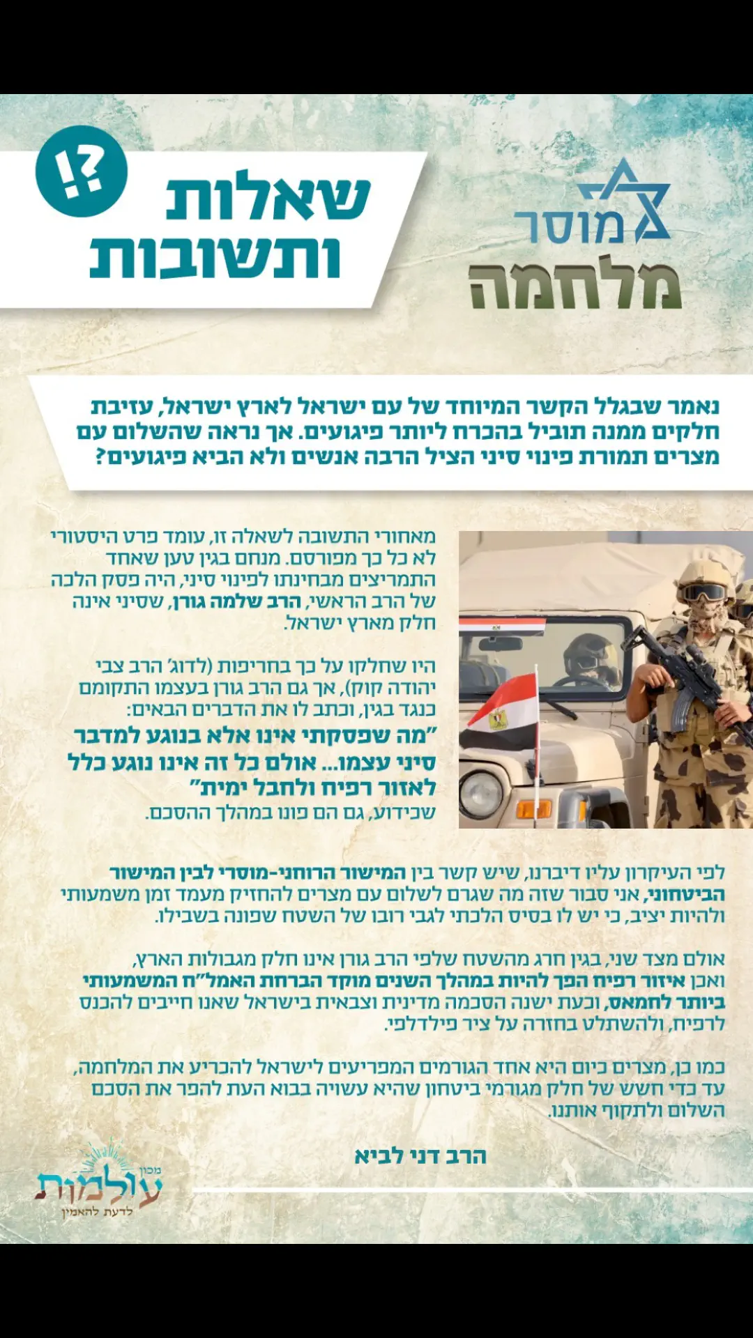 בעלון של הרב מזוז בשבת חול המועד, הפנו למאמר שלו על יום ירושלים בחומש בית נאמן ויקרא פרשת בחוקותי אם אתה רוצה לחפש.