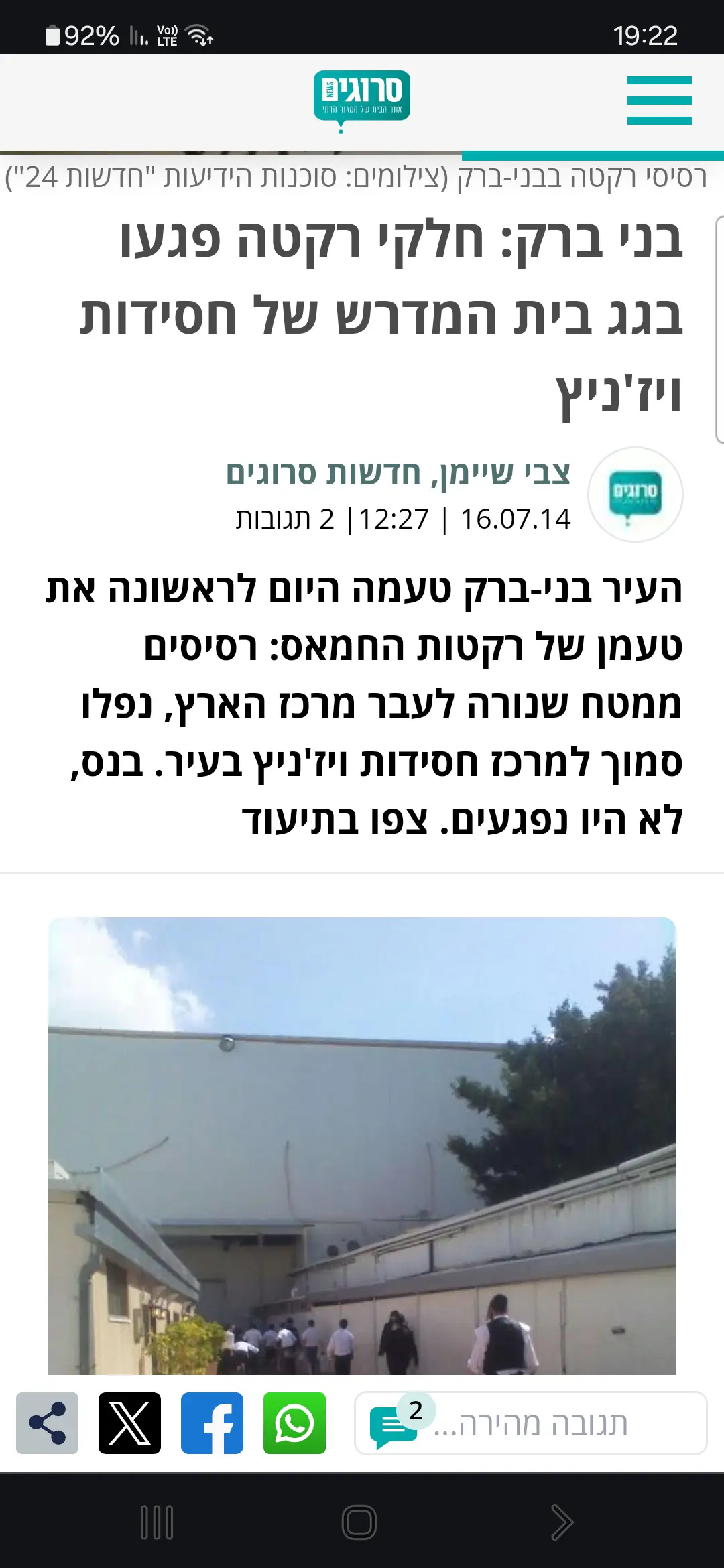 ובית כנסת בזמן תפילה לא גרע מאיזו חנות נעליים בבני ברק שבה לא יפול טיל..