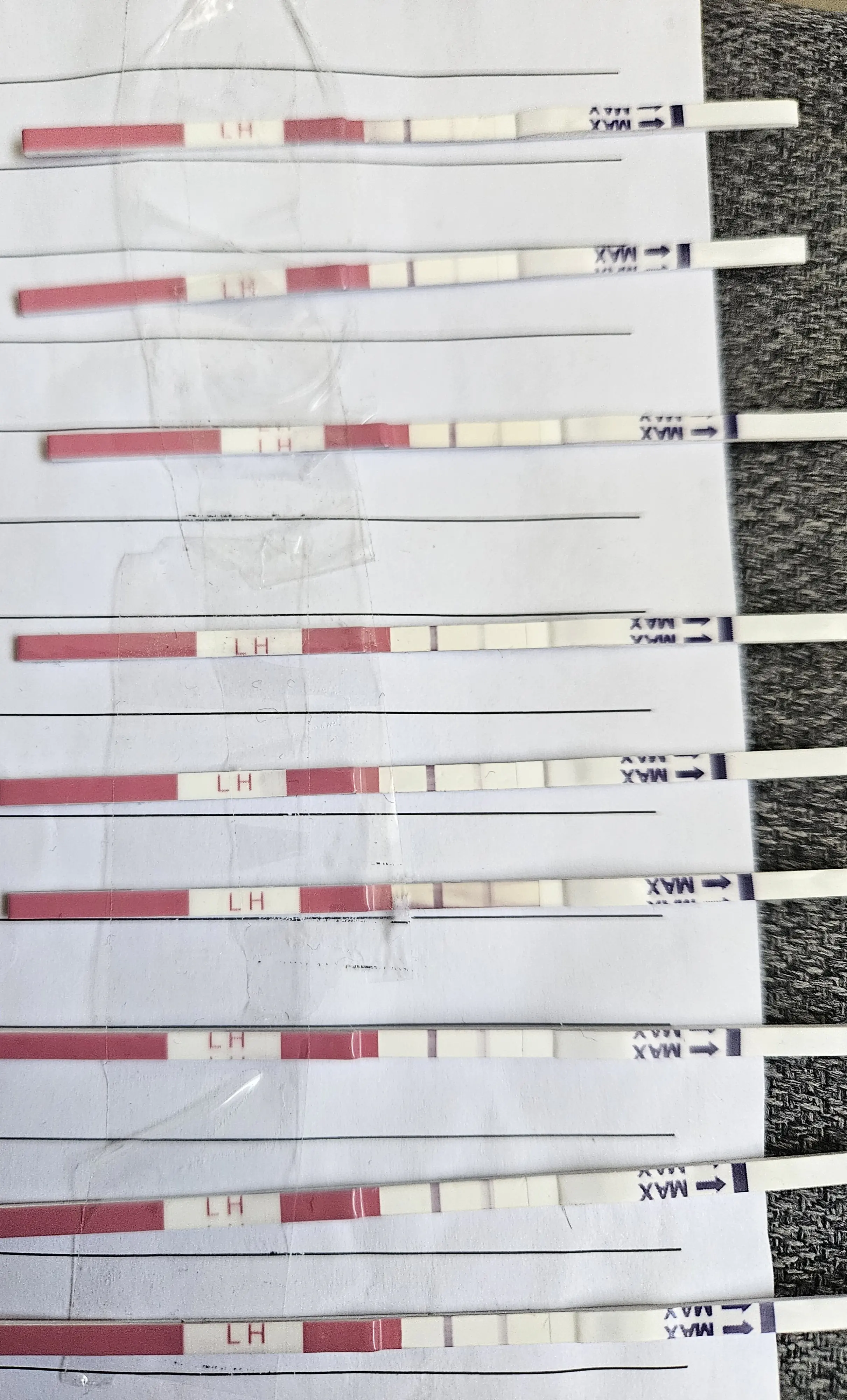 אין הפרשות בכלל (כל חודש אני מזהה לפי הפרשות שמתחילות משהו כמו 4 ימים לפני, הפעם החלטתי לבדוק גם עם מקלונים)