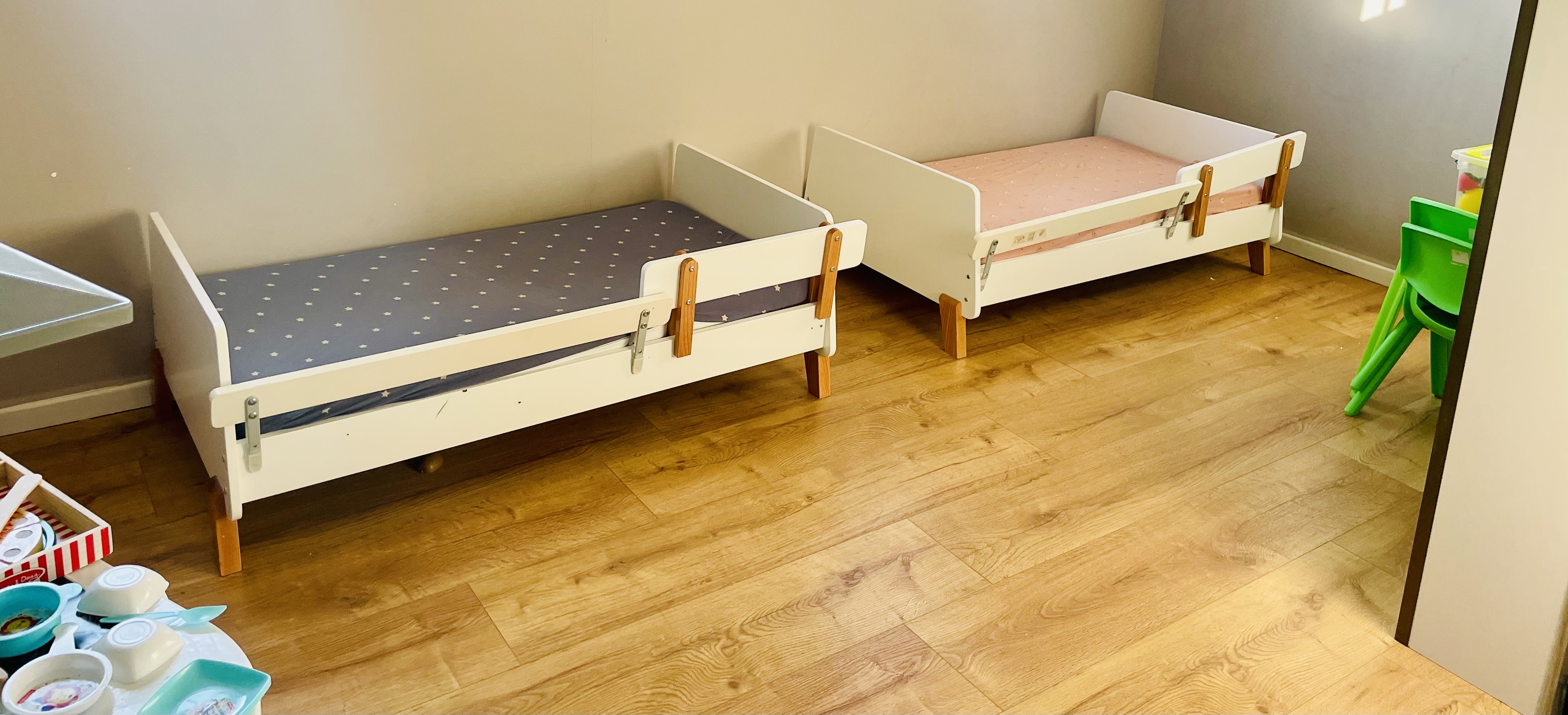 את המיטה הכחולה להזיז או מול או בניצב (אם נכנס) למיטה השניה, זה יפנה חלל בחדר שבו אפשר לשחק.