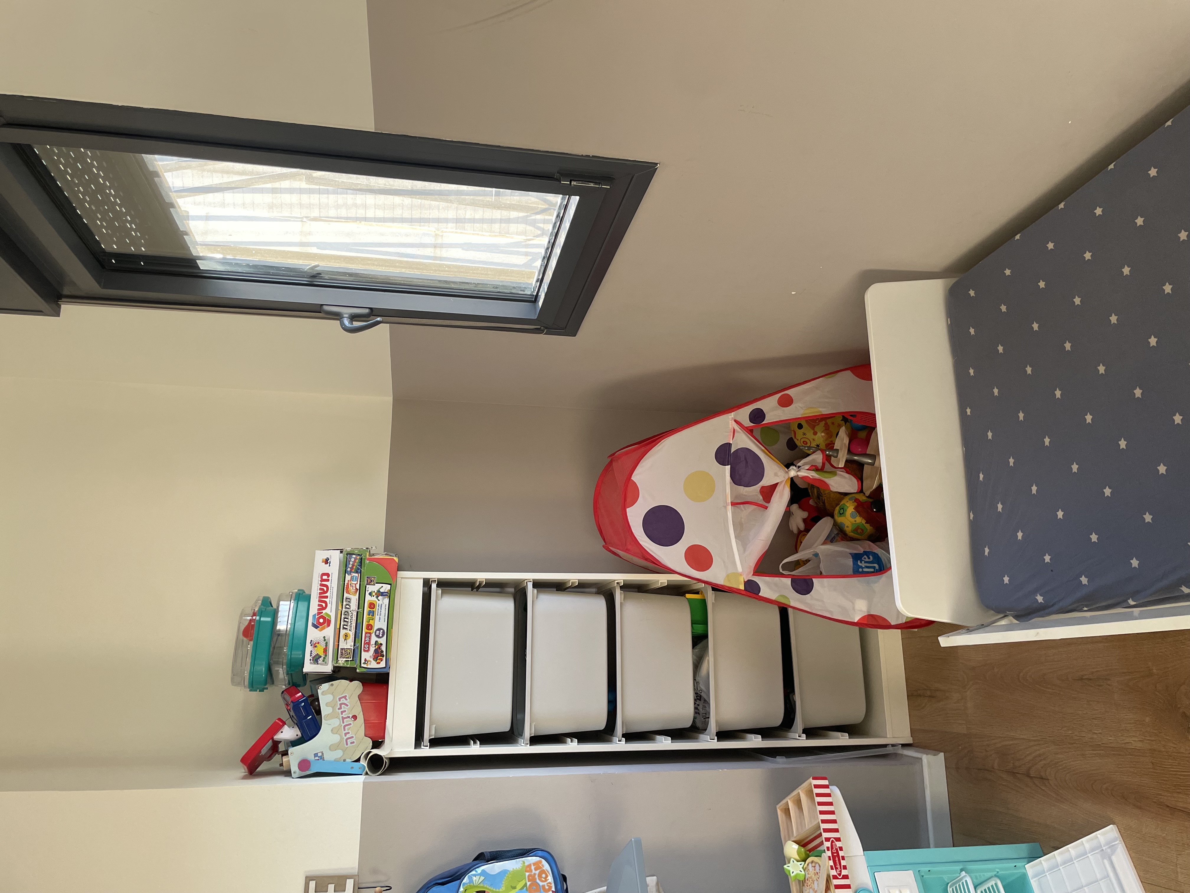 מוסיפה איפה שהייתה המיטה הכחולה כוורת עומדת ששם יהיו כל הצעצועים שברחבי הבית ואין להם מקום. וליד את המגירות שצילמת.