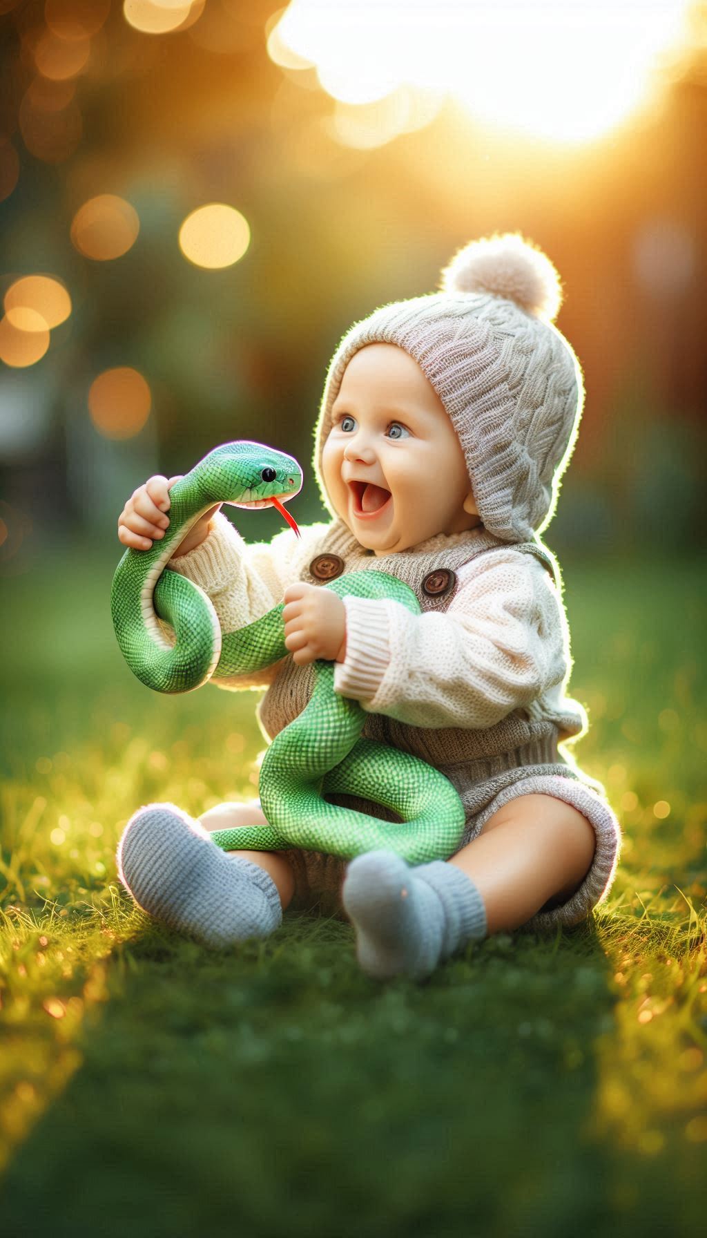 רק התינוק עם הנחש היה נראה לי סיטואציה שאני ממש יכולה לדמיין איך תינוק שאוהב להכניס הכל לפה פותח פה גדול על הנחש וזה לא עושה לי גאולה משום מה