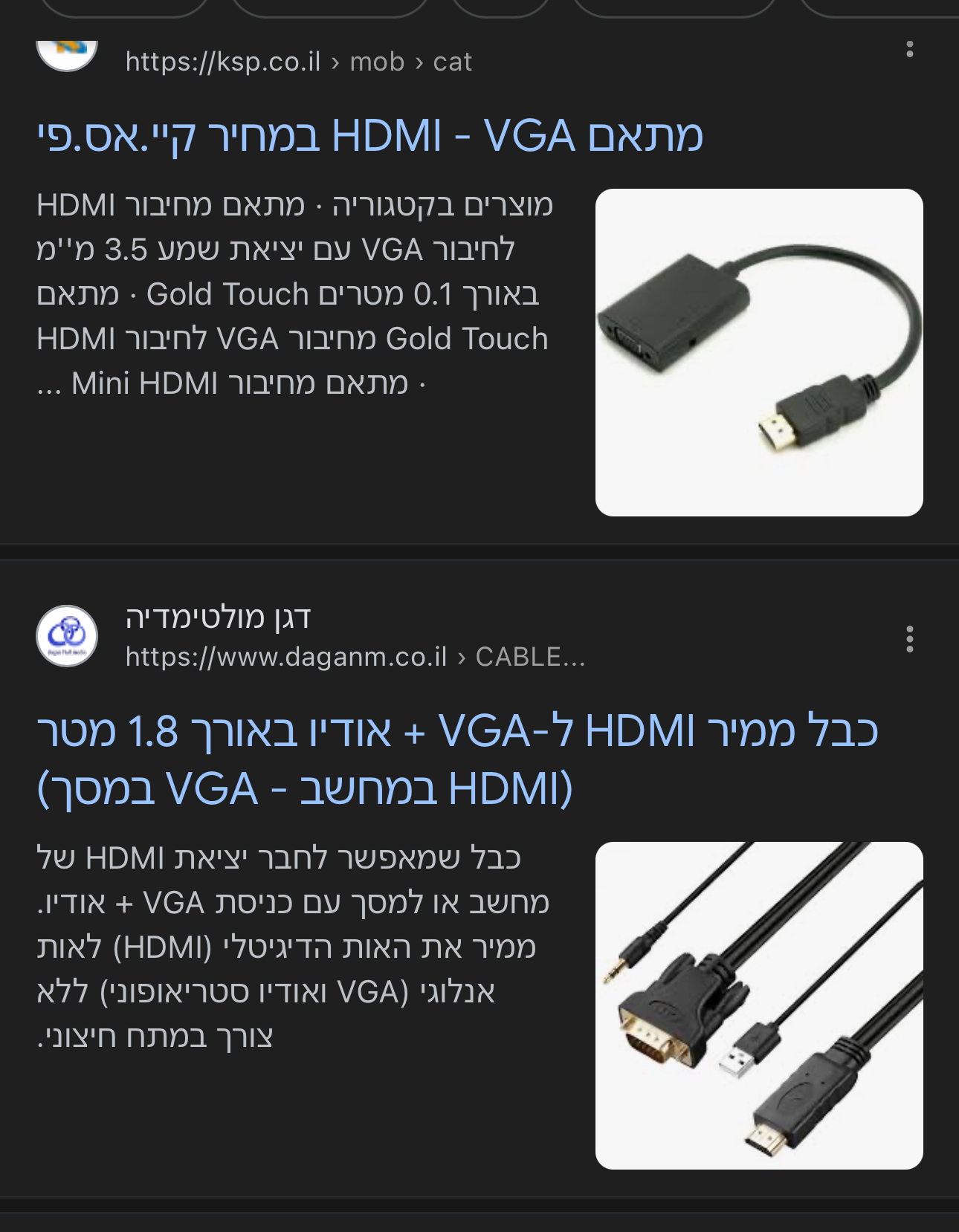 תבדוק אולי למסך שלך יש גם אפשרות HDMI?