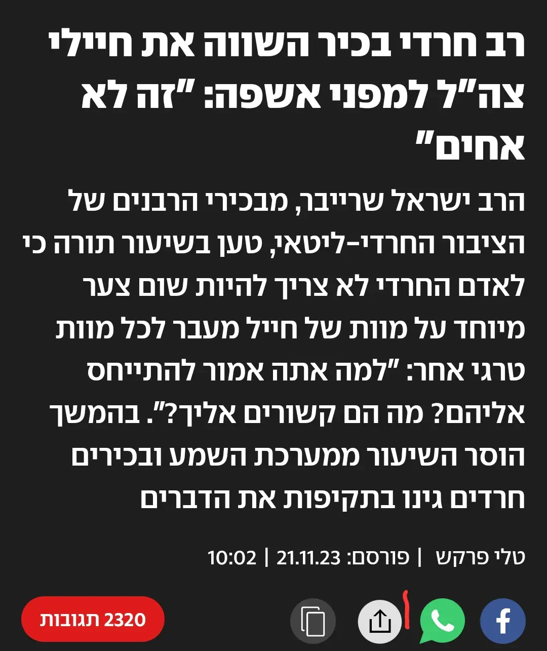 אבל הייתי רציני, אל תפיץ שקרים על החרדים