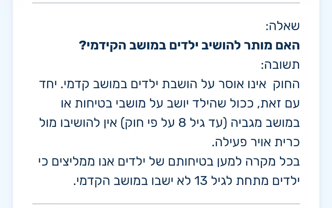 הסיכון בפגיעה בתאונת דרכים מקדימה הרבה יותר גדול בטח לילד או תינוק ולכן לא עדיף לשים מקדימה..