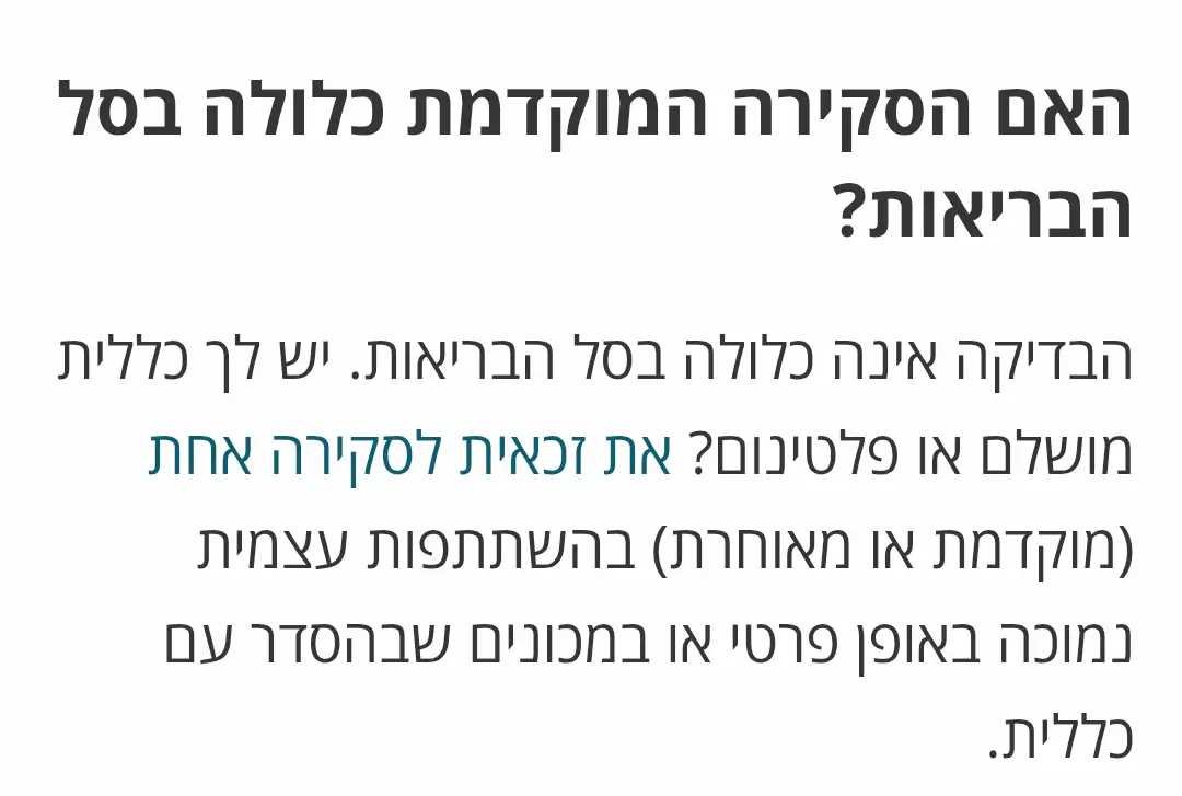 אבל העניין הוא שאם לא הכניסו את זה לסל הבריאות, זה מראה על זה שהבדיקה פחות נחוצה, ובטח לא הכרחית, מבחינה רפואית.
