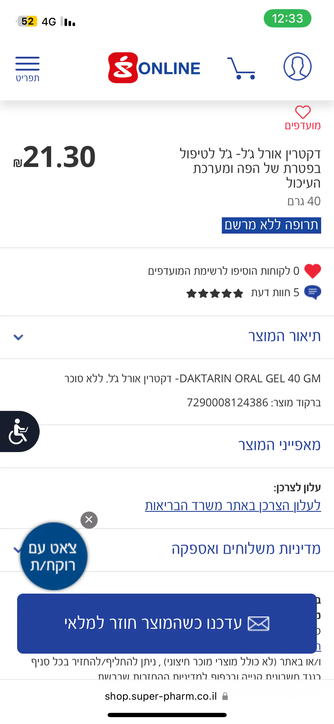 מישהי יודעת אם יש במלאי דקטרין אורל ג'ל ?אלה 12