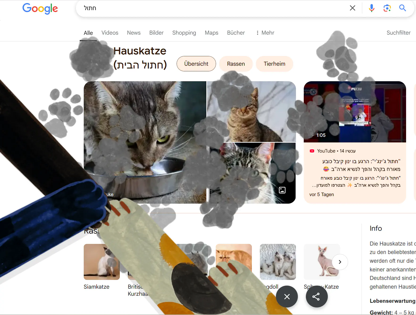 משהו שגיליתי לפני שנייה בערך, אם אתה מחפש "חתול" בגוגל, ולוחץ על הכפתור עם הכפה (מכוסה באפור), נשלחות ידיים של חתולים אל כל מקום שאתה לוחץ עליו ומשאירות טביעות כפה