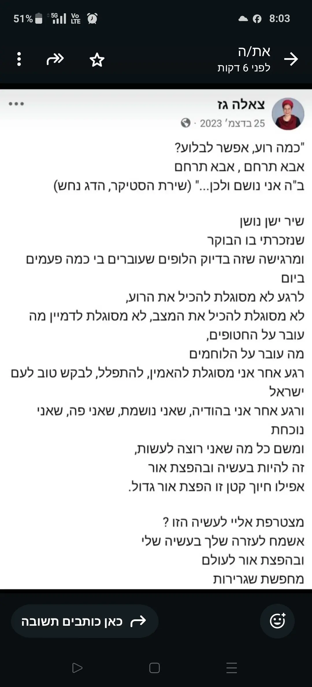 לדעתי סופרת התנהגה לא יפה. כי אחרי אובדן אנשים סוג של כועסים על קרוב שלהם שנהרג או נפל או נרצח ומנסים להתנחם גם בצורה כזאת. הרגשתי משהו דומה אחרי מות אימי. אבל סופרת לקחה את דברים אישיים שלהם ופירסמה לכל העולם. דווקא נשים זקנות ודרוזיות ידעו לא להגיד דברים שלא כדאי להגיד.