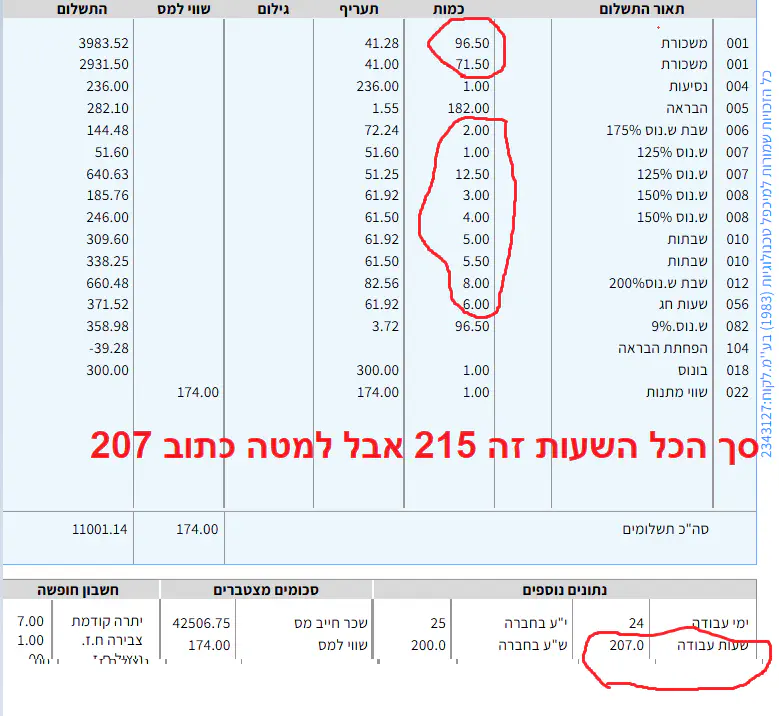 אני מקבלת תלושי משכורת שכתוב בפירוט שעות סכום מסויים של שעות ובשעות למטה סכום יותר נמוך, למה זה?