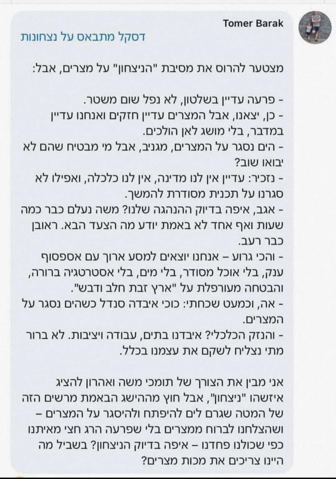 ברמה האישית התקשיתי להתעלות לגודל השעה ולהתפעל מהניסים, יותר התבאסתי ונלחצתי והתקשיתי לעבור את התקופה.