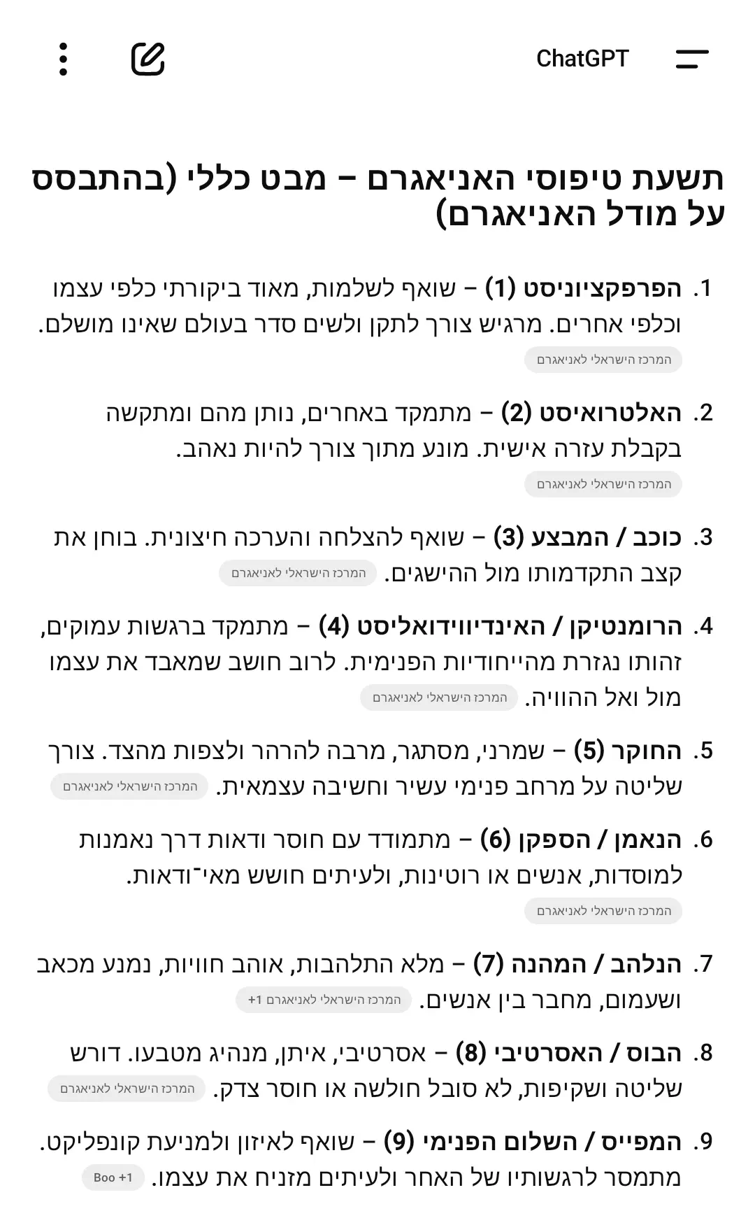 יש ספר שמחלק את כלל האנושות ל9 סוגי אישיות, בשם מודעות(מאת מרים אדהאן)