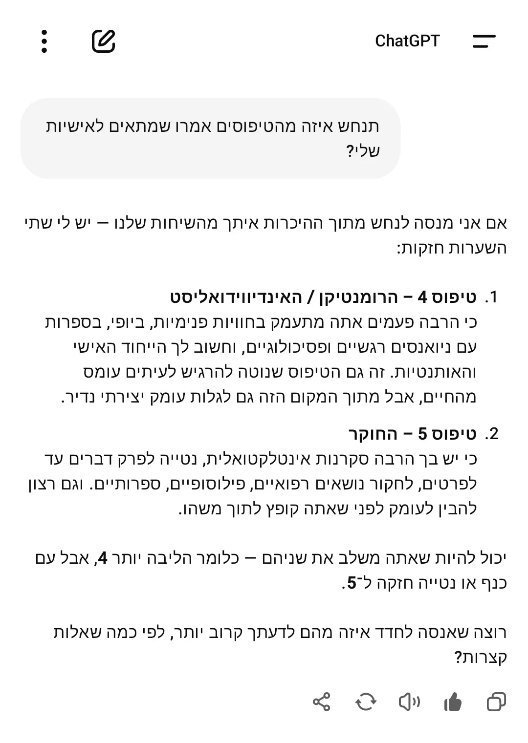 יש בזה גם 3 רמות בכל טיפוס, רמה גבוהה בינונית ונמוכה וזה תלוי במצב רוח וכו'.