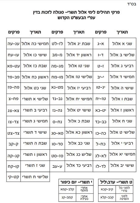 אומרת כל יום שלושה פרקי תהילים לפי החלוקה שמסיימים את הספר מראש חודש אלול עד סוף יו"כ
