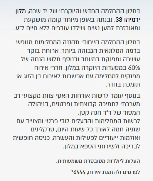 הם נותנים נופש זוגות 3 ימים במלון של ירמיהו 33 בירושלים.