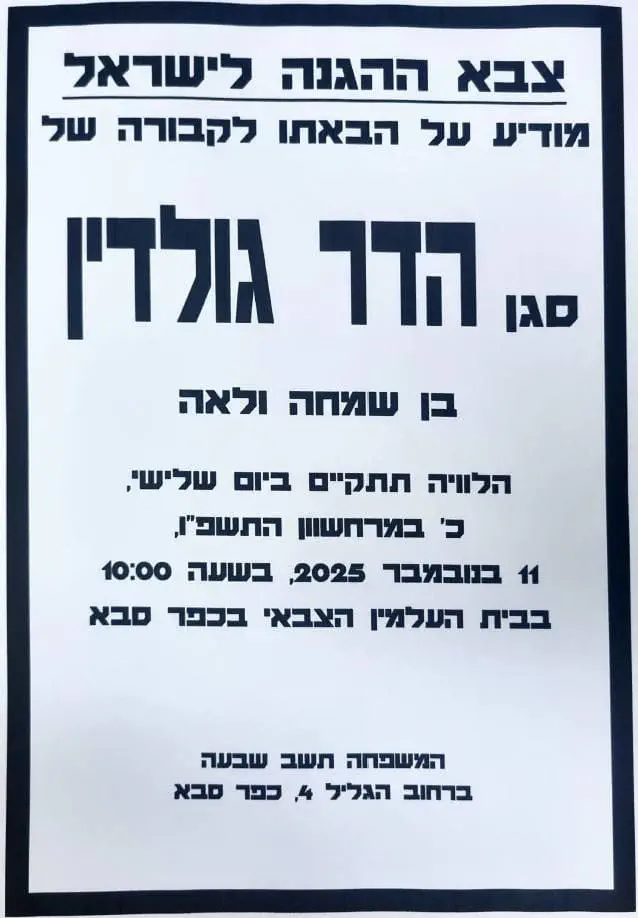 האם פרסמו את מועד ההלוויה של הדר גולדין הי"ד?אשר ברא
