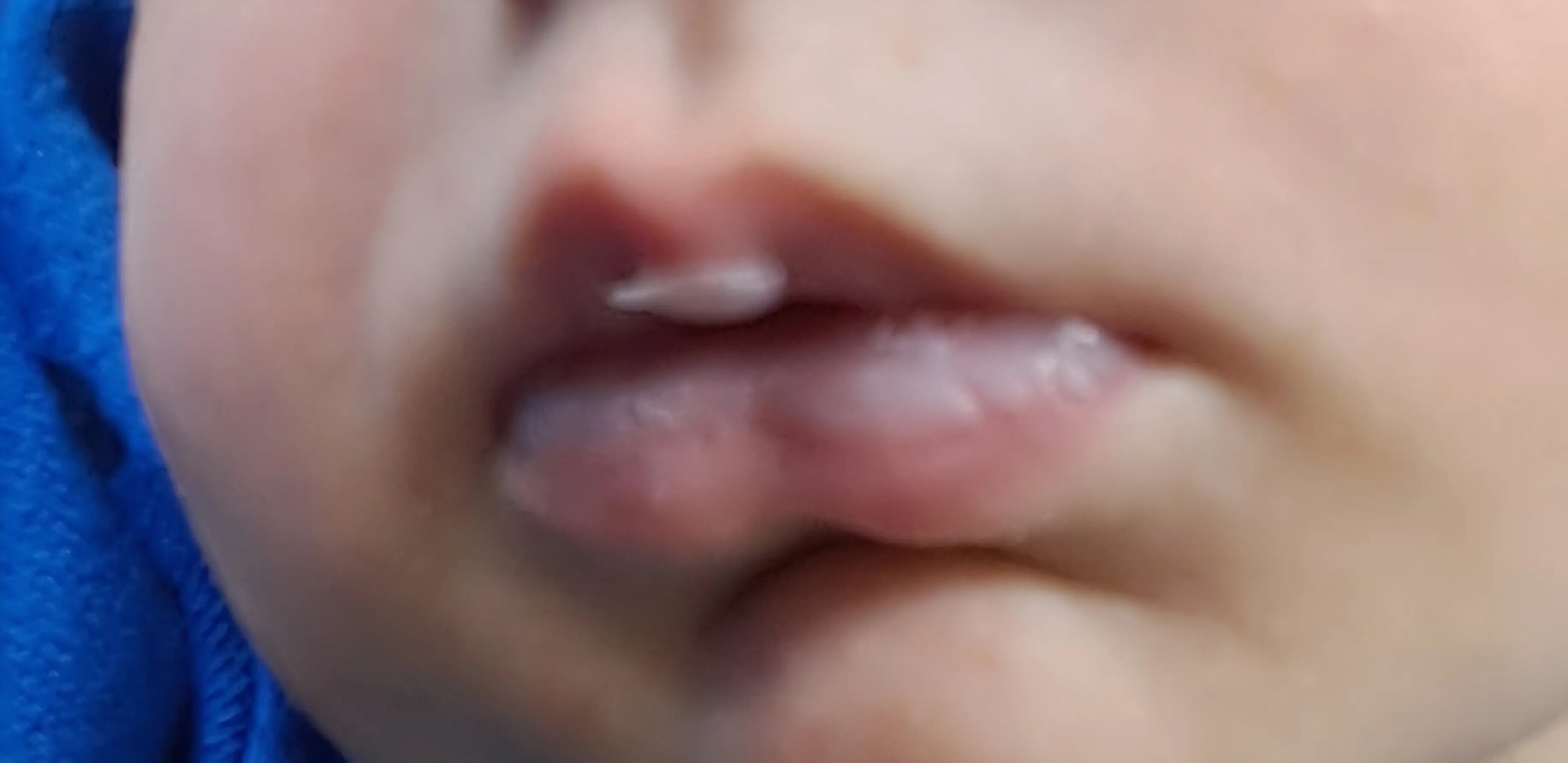 והמצב השני – שלפוחית אחת באזור המרכזי של השפה העליונה המופיעה בתינוקות קטנים (ראו בתמונה) ונקראת שלפוחית הנקה. השלפוחית נוצרת בגלל חיכוך האזור עם הפטמה, בקבוק או שד. אין לכך שום משמעות, השלפוחית לא כואבת והיא תעלם במהלך של ימים.