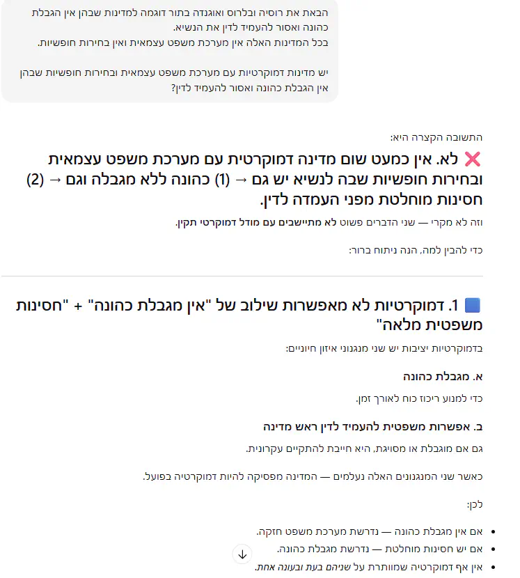 אני לא טוען שצריך להגביל כהונה של ראש ממשלה, אלא רק מראה את הבעייתיות של דיבור על החוק הצרפתי בלי להתייחס לעניין הזה.