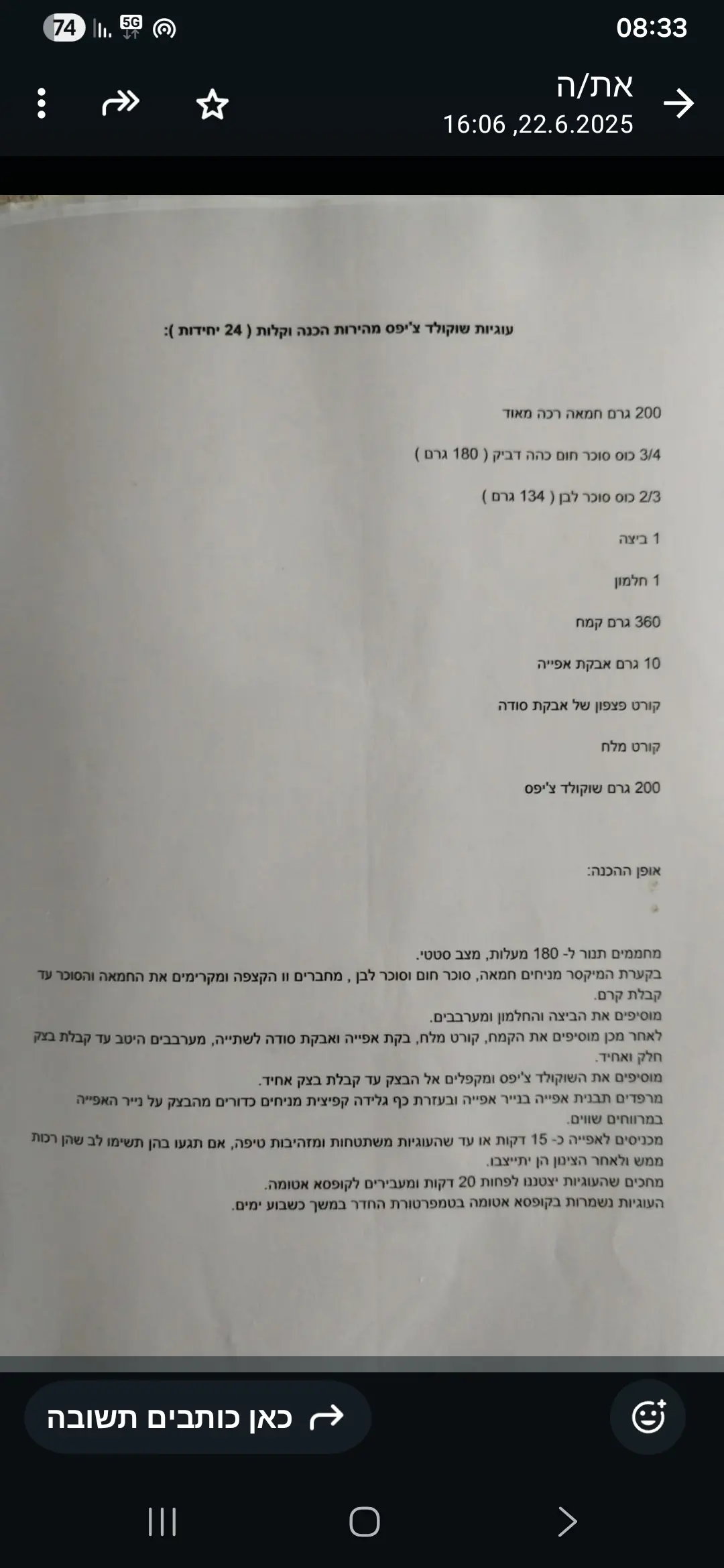 עדיפות למתכון יחסית פשוט ולא מסובך
