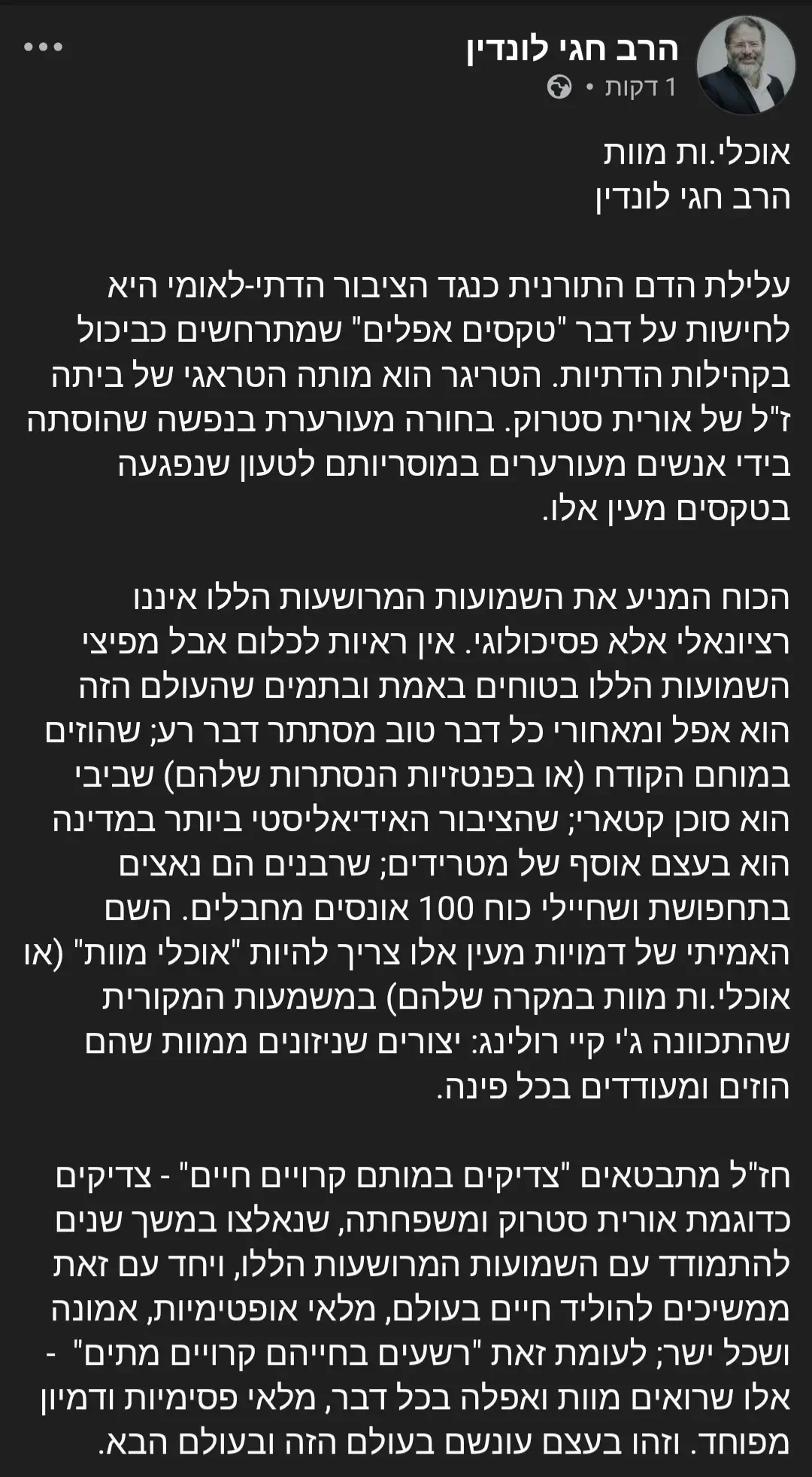 פוסט יפה של הרב לונדיןקעלעברימבאר