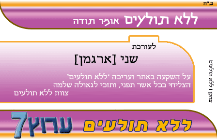 שיהיה לך הרבה ב"הצלחה במה שאת עושה, ויישר כח על כל הפעילות ב"ללא תולעים.