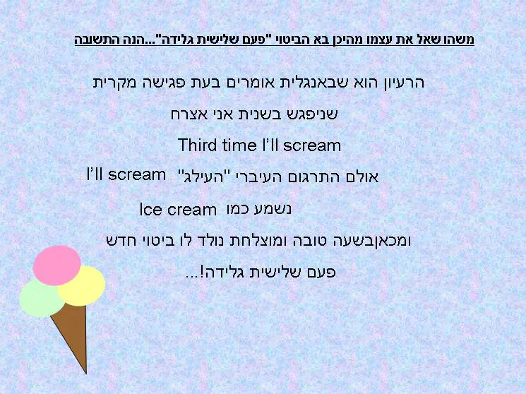 שיו ישי אתה גמור אחרי הכל גם אני רוצה גלידה...מלמעלה אלוקים