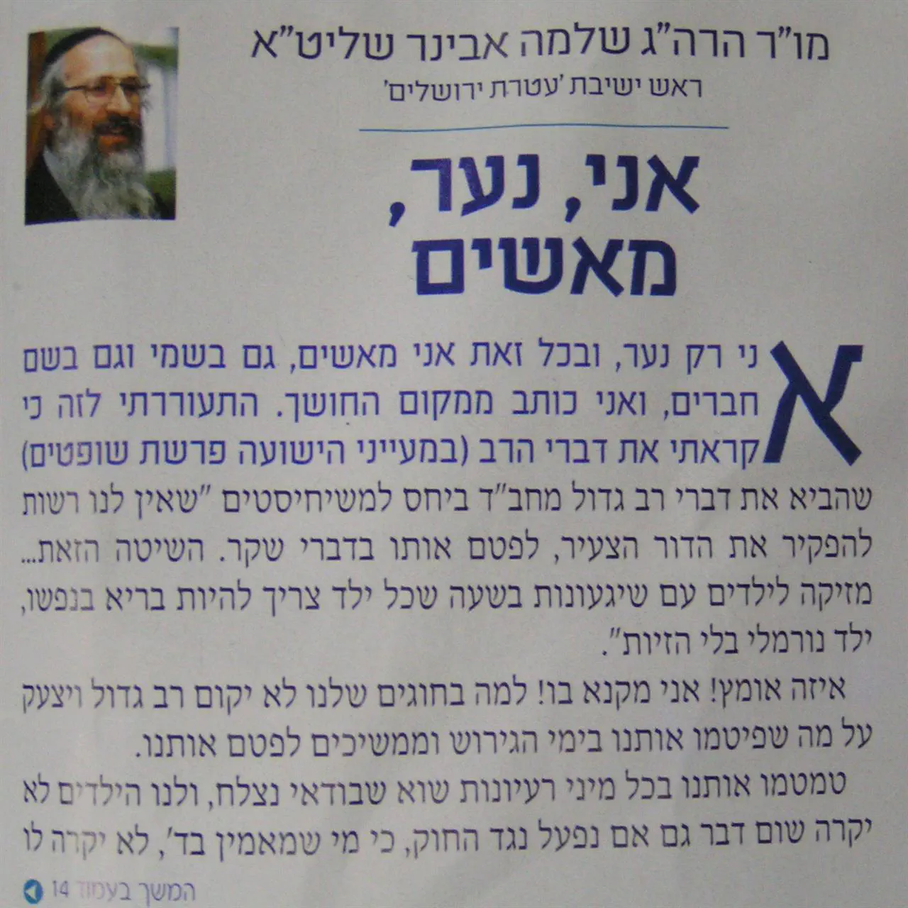 והוא הדין בעניננו. קשה לעכל זאת, אך הרב שלמה אבינר, אשר חשבנוהו לרב וגדול בישראל, הוליך את כולנו שולל.