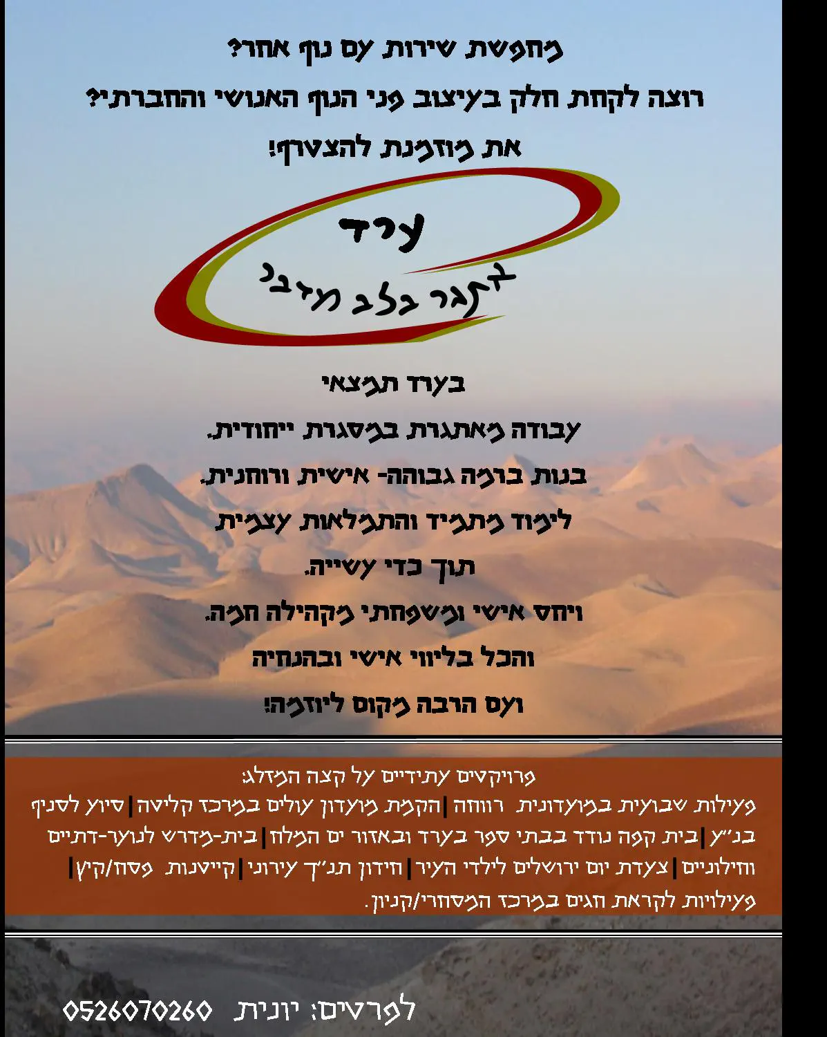 אם את מחפשת שירות משמעותי ומאתגר, אם את יכולה לעבוד גם בשעות לא שגרתיות, אם יש לך ראש גדול ויכולת נתינה, ואת רואה עצמך כבחורה אכפתית וחמה - מקומך איתנו!