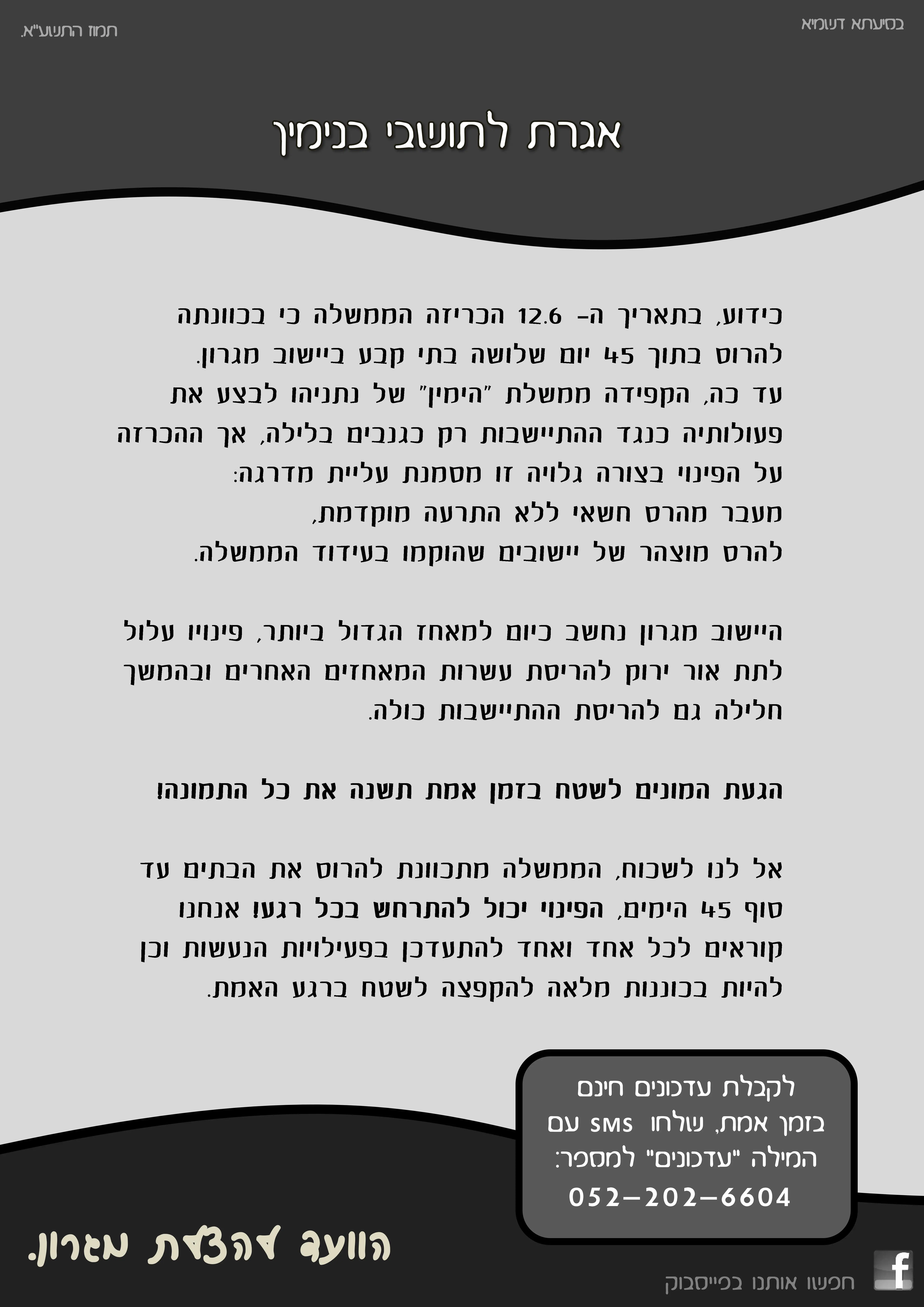 ב"ה הלילה נתלו בכל רחבי בנימין-שומרון מאות מודעות!ליאת=]]