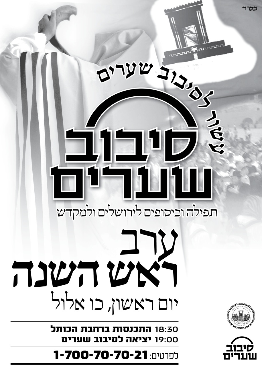 סיבוב שערים ערב ראש השנה ביום ראשון כו אלול. יוצאים ב 19:00 מהכותל. כבר חודשיים שלא היה סיבוב שערים. אז הפעם חשוב מאוד להגיע. חוזרים בתשובה - חוזרים למקדש. (מתוך דף הפייסבוק שלהם)