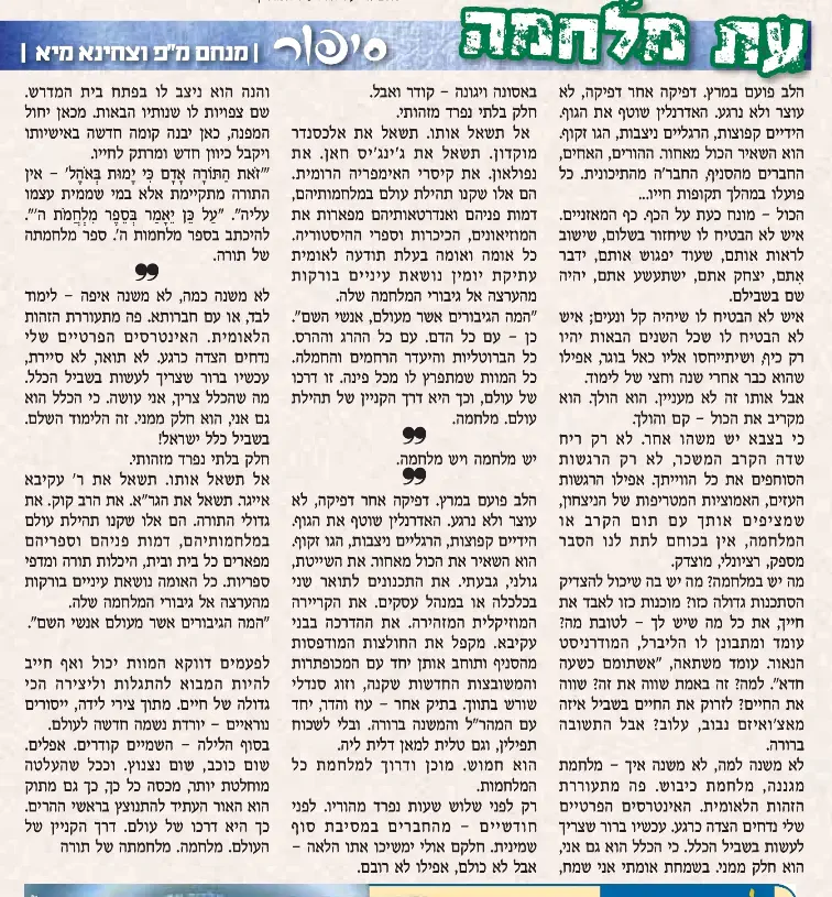 לעומת זאת, התמסרות לדת, שוב היא לא תלוית הקשר. גם בשלום גם במלחמה, גם באתגר כזה גם באתגר אחר - יש סיבה לשנות את החוזה מול הקב"ה? זה לא הגיוני.