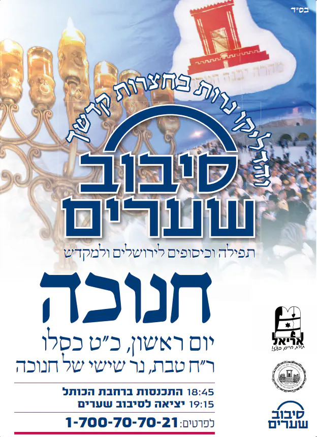 יום ראשון, כ"ט כסליו, נר שישי של חנוכה, בשעה 19:15