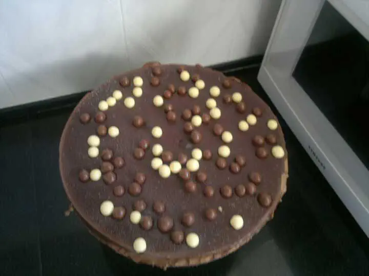 עוגת הבית שאני מפוררת, מוסיפה גנאש שוקולד (שוקולד מומס עם שמנת מתוקה)