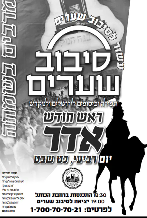 בראש חודש אדר זה גם הזמן להרבות בשמחה בסיבוב שערים. אף שהמקדש עדיין חרב – אנו שמחים בדרך. נבוא לשמוח ביחד –לשאוב מהמעיין הגנוז לנו בבניין בית חיינו במהרה בימנו.